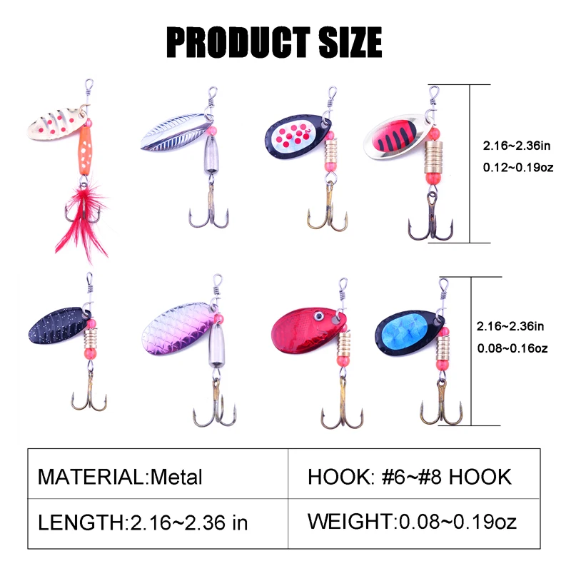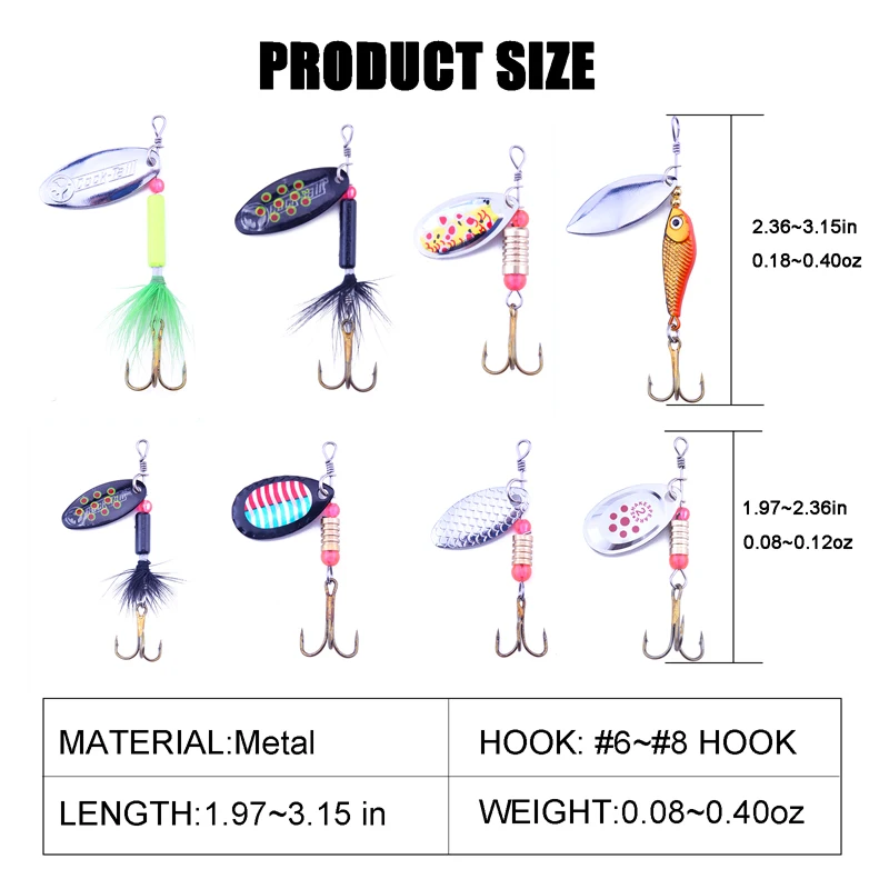 JsFun-Juego de Señuelos de Pesca giratorios, Kit de cebo Artificial de ganchillo, cuchara de Metal, 17 unids/lote por caja