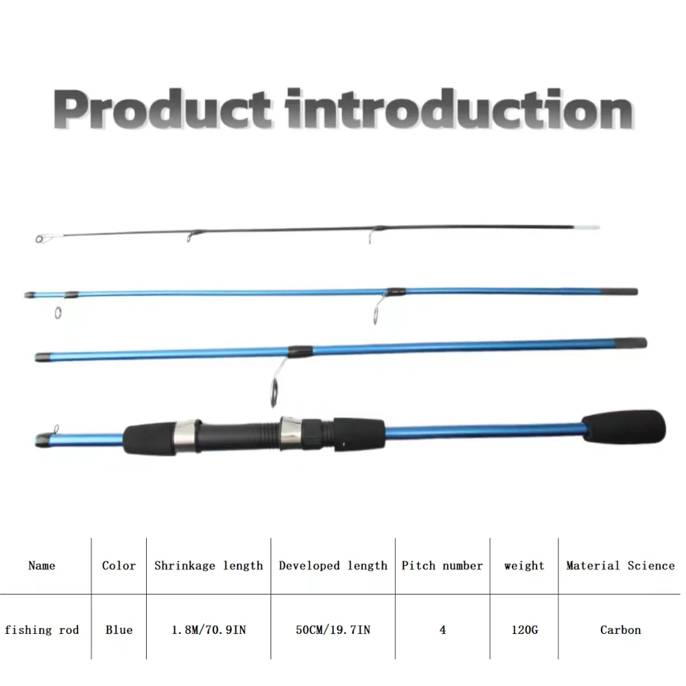 1. Longitud 50cm de contracción, diseño de caña de pescar de 4 secciones, fácil de llevar;