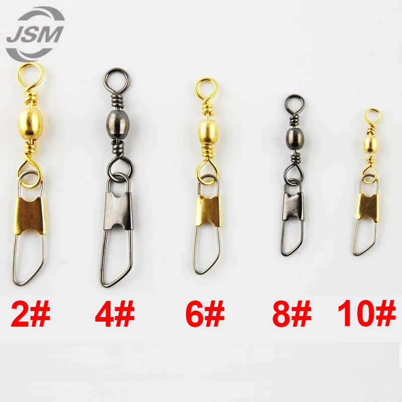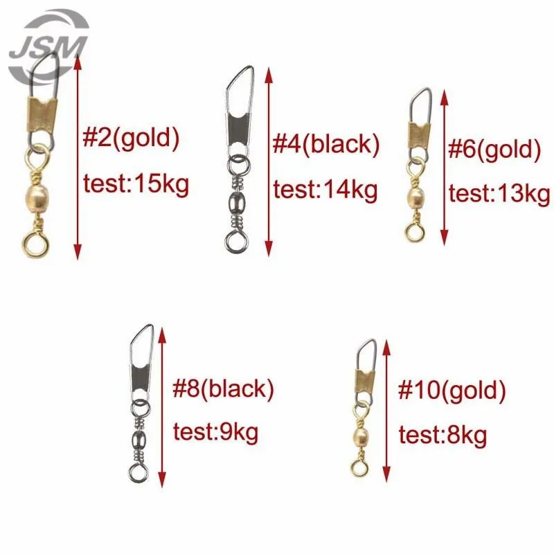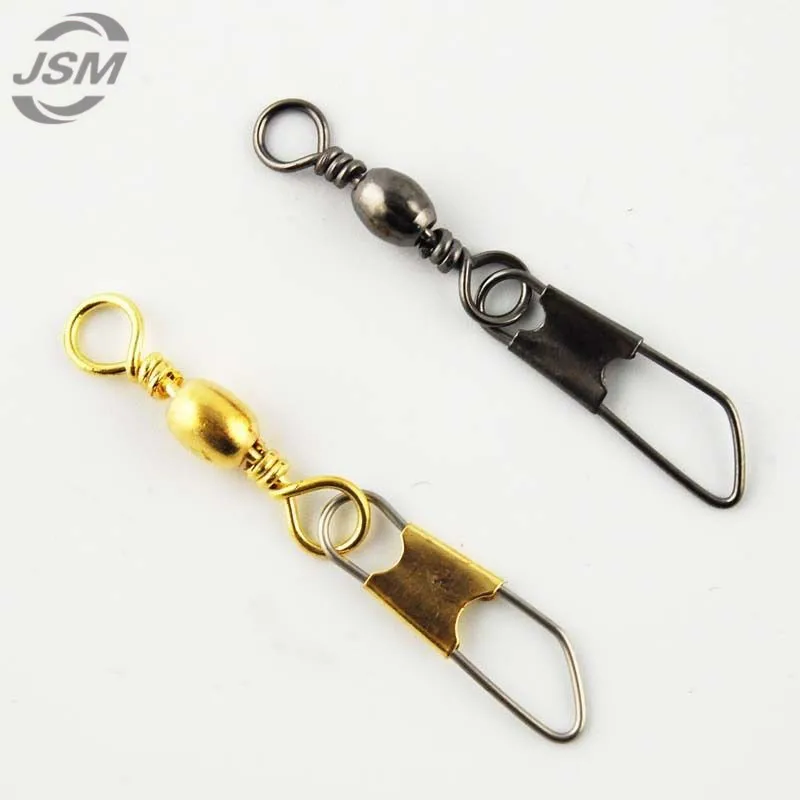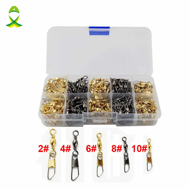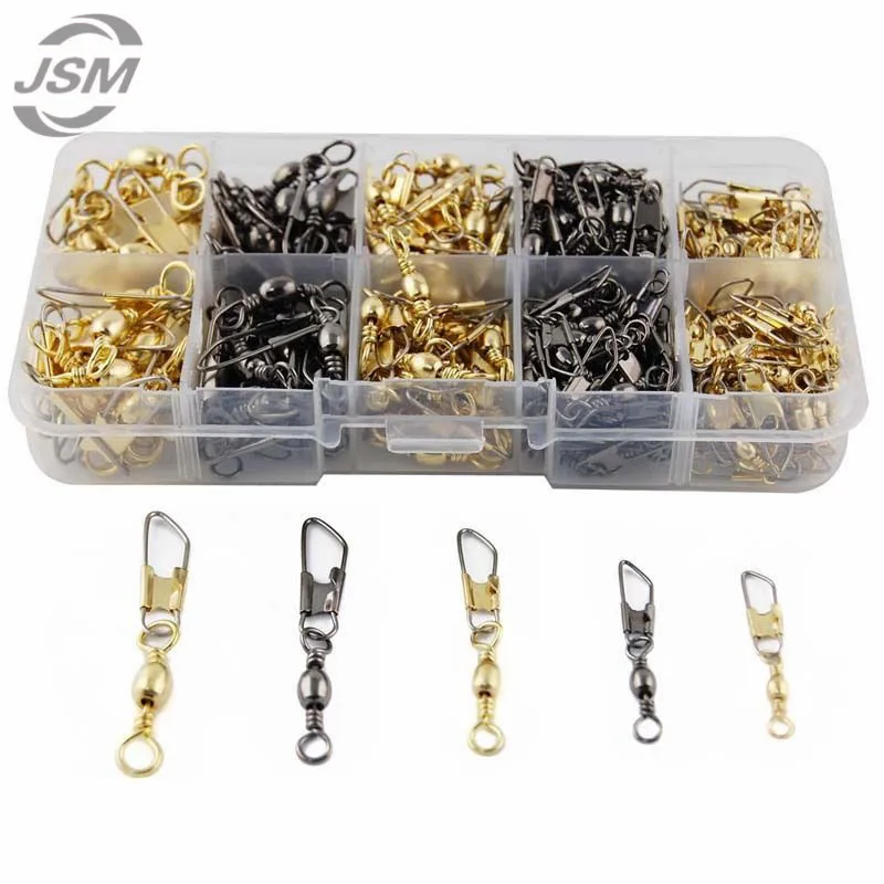 JSM 260 piezas de barril de pesca giratorio con broche de seguridad barril de Pesca de Mar de oro negro Juego de conectores giratorios con caja