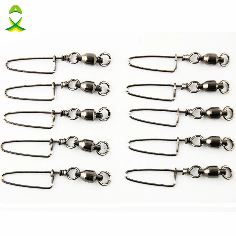 JSM, rodamiento de bolas de 10 piezas, eslabón giratorio de pesca con cierre de presión de latón con eslabones de pesca de níquel negro, aparejos de pesca