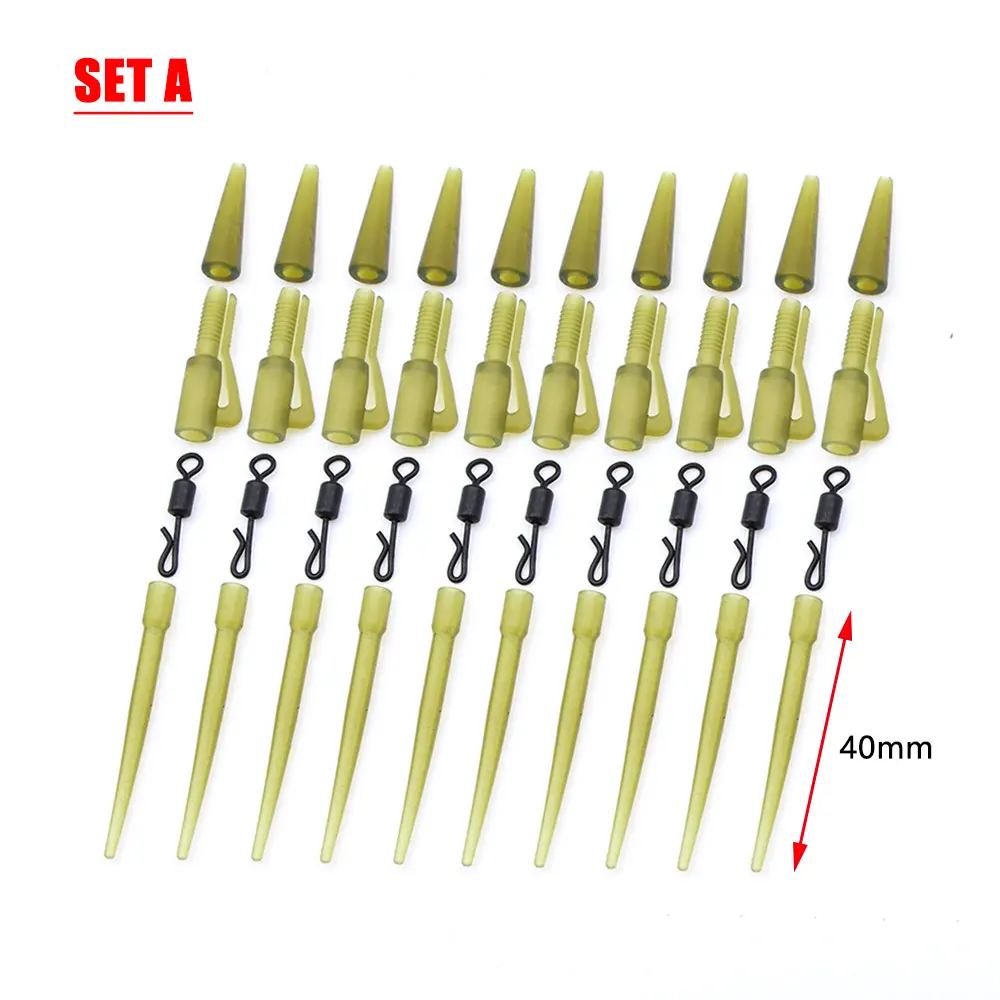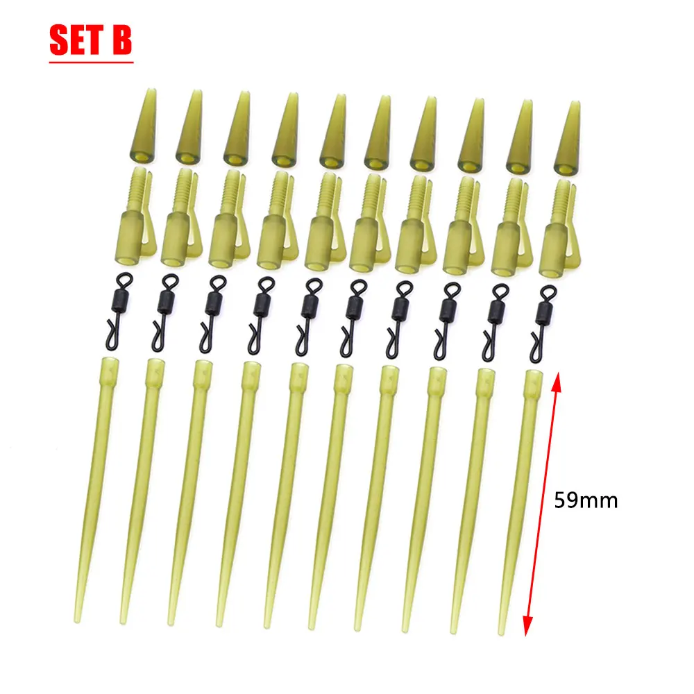 Packag Include:Tail Rubber * 10pcsLead clip * 10pcsAnti tangle sleeve * 10pcs (Tips: Available in 40mm or 59mm)Quick change swivel * 10pcs
