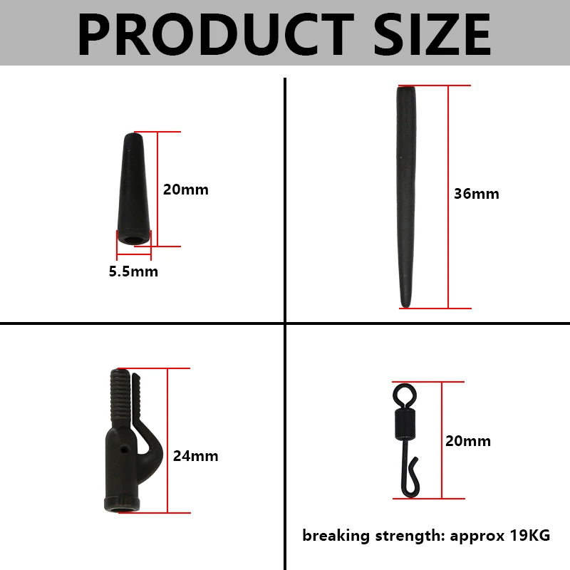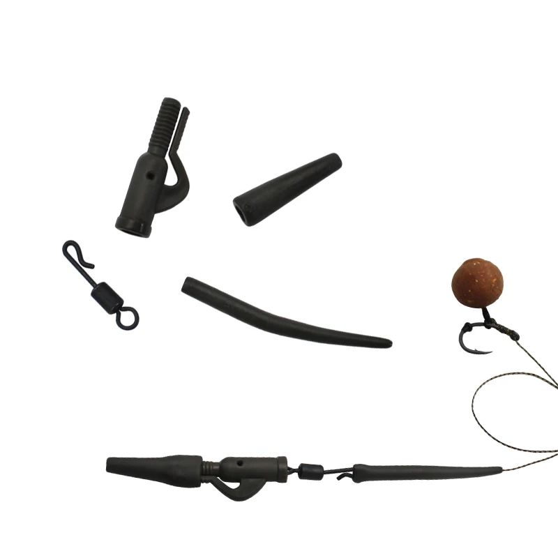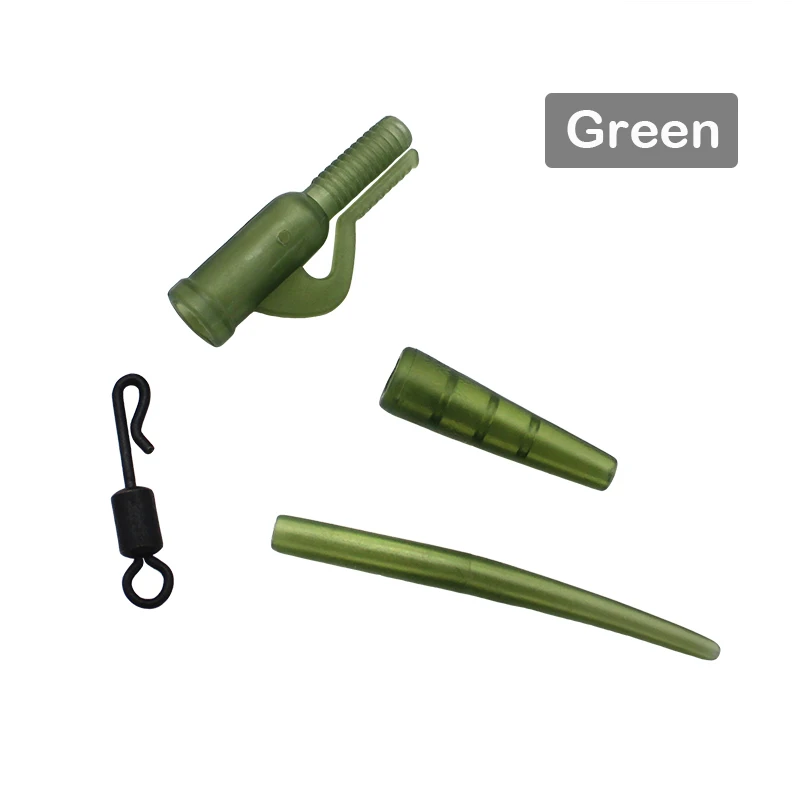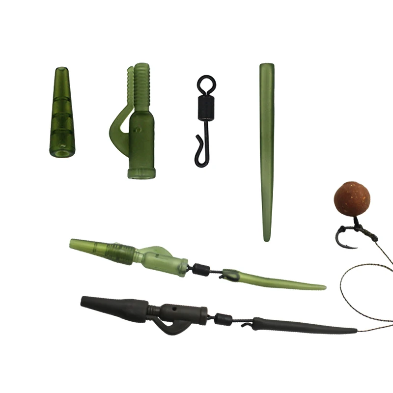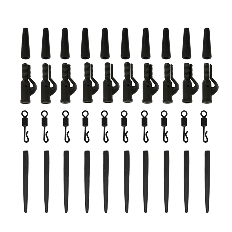Juego de 10 accesorios para pesca de carpa, Kit de fabricación de aparejos giratorios QC, Clips de plomo de manga antienredos, cola de goma para aparejos de Terminal de pesca de carpa