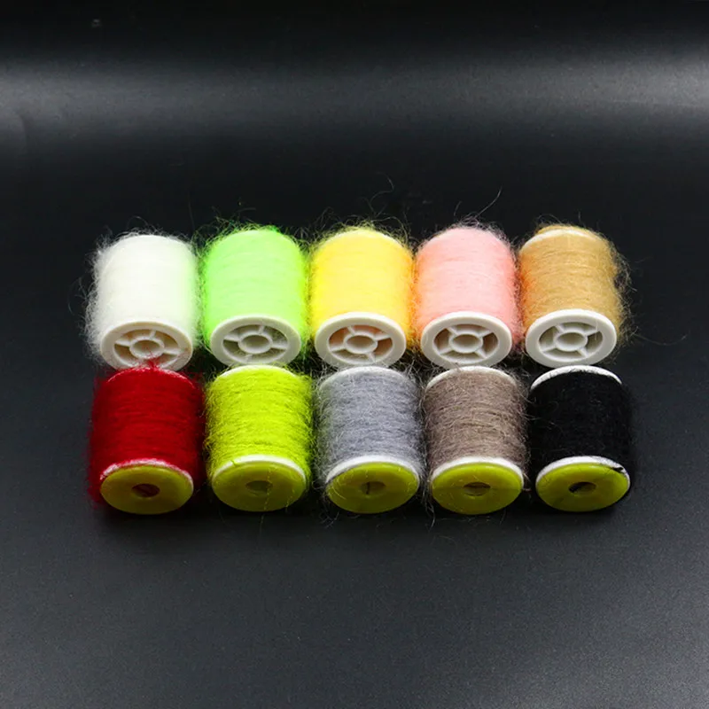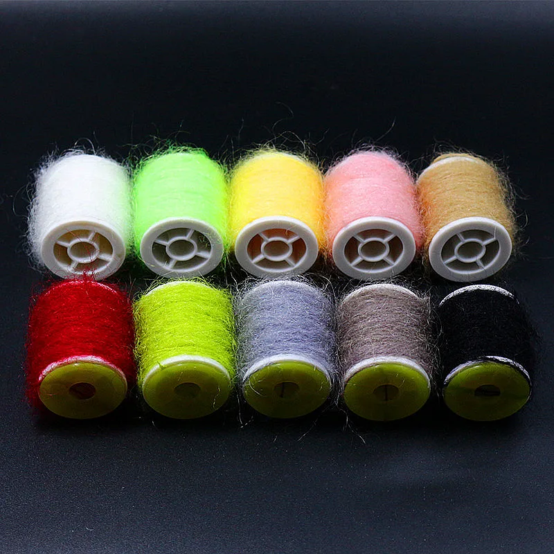 Juego de 10 carretes de 10 colores nuevos, hilo de sanguijuela atado de moscas, hilo de mohair para serpentinas y cuerpos de ninfa de pelo, hilo de Ninfa con buggy peludo súper finoCaracterísticas:Este es un cabello largo de angora de alta calidad retorcido en un hilo. Estas fibras largas transpirables se utilizan mejor para serpentinas y cuerpos de ninfa de pelo.