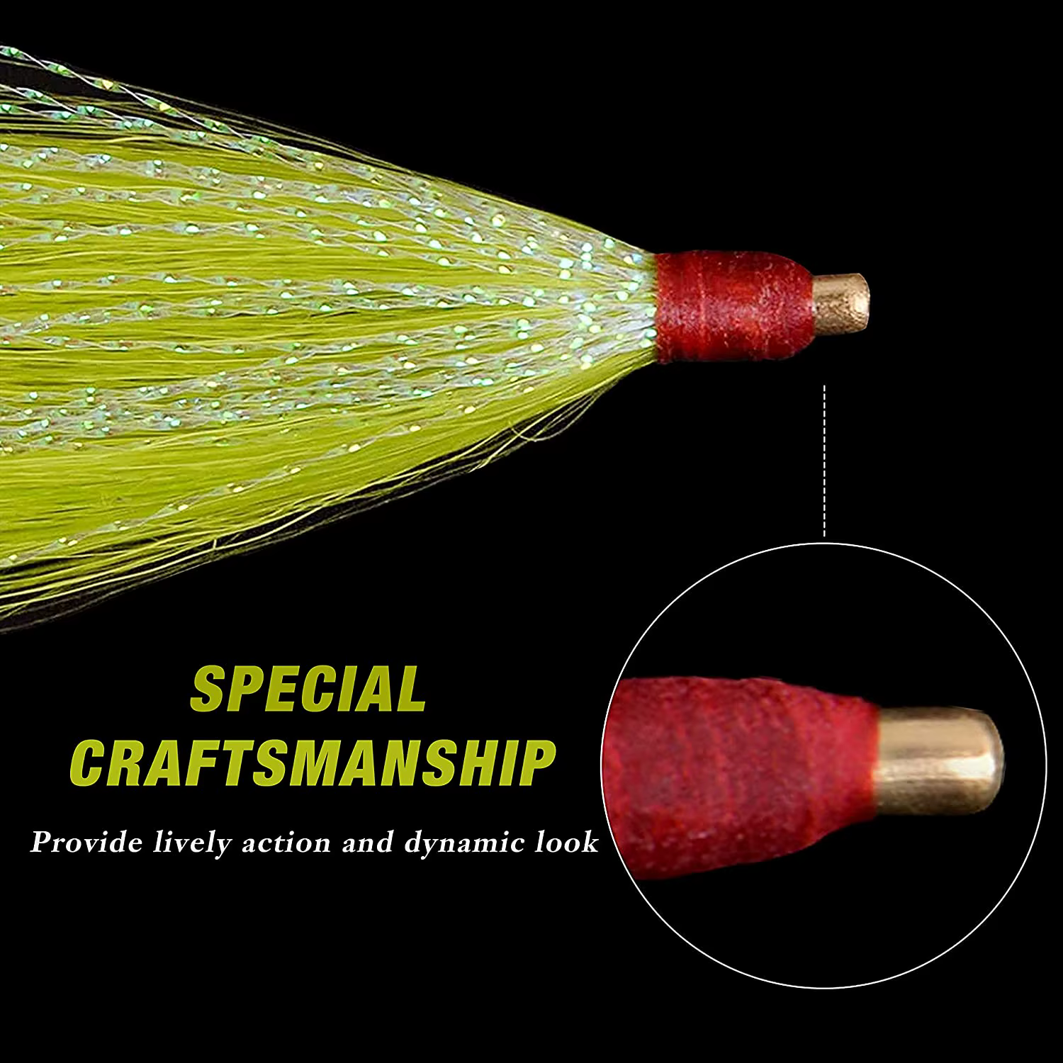 2. Hecho de pelo de cola de ante natural con Mylar y atado en un ojal de latón, El Teaser añade destello de atracción de peces y movimiento pulsante a su cebo.
