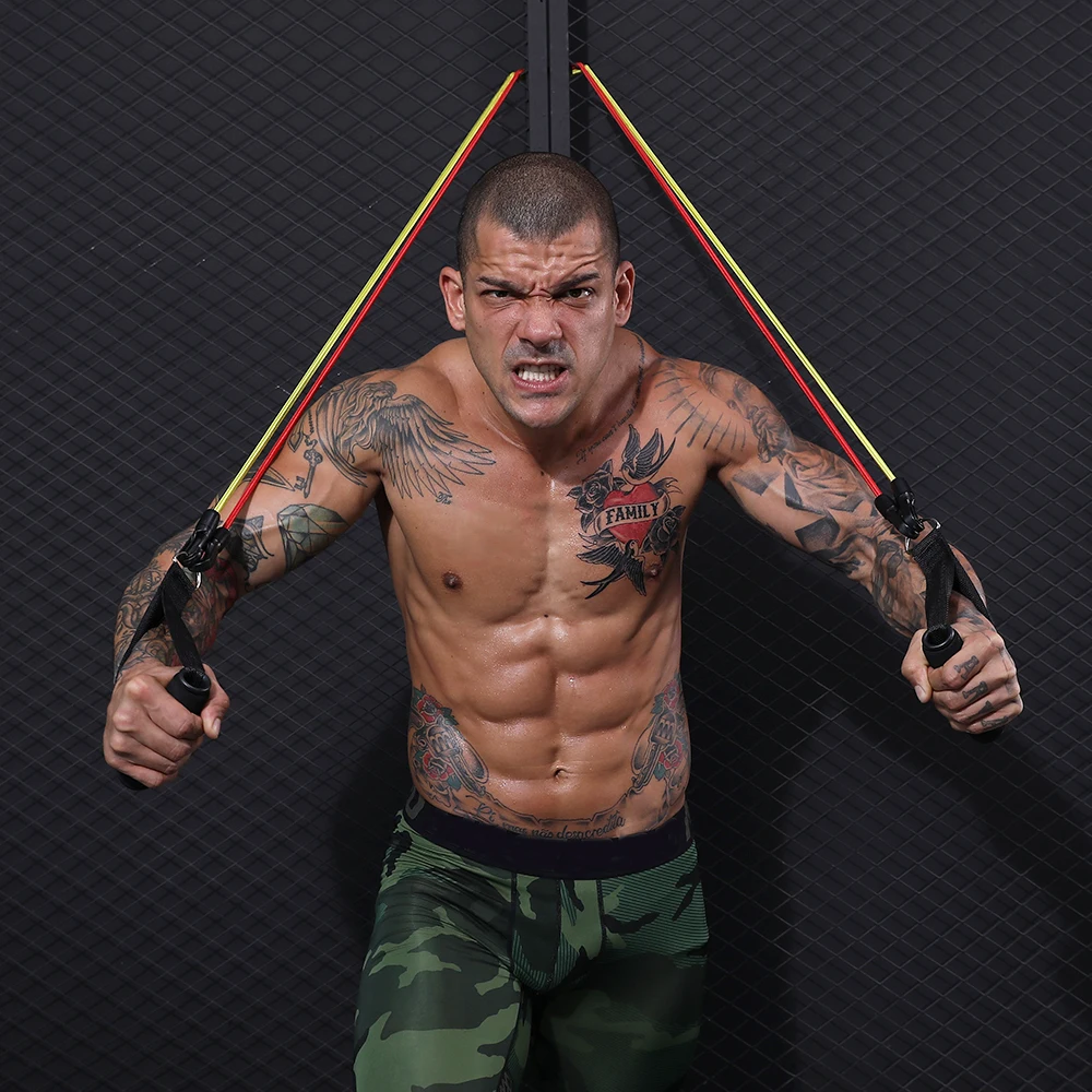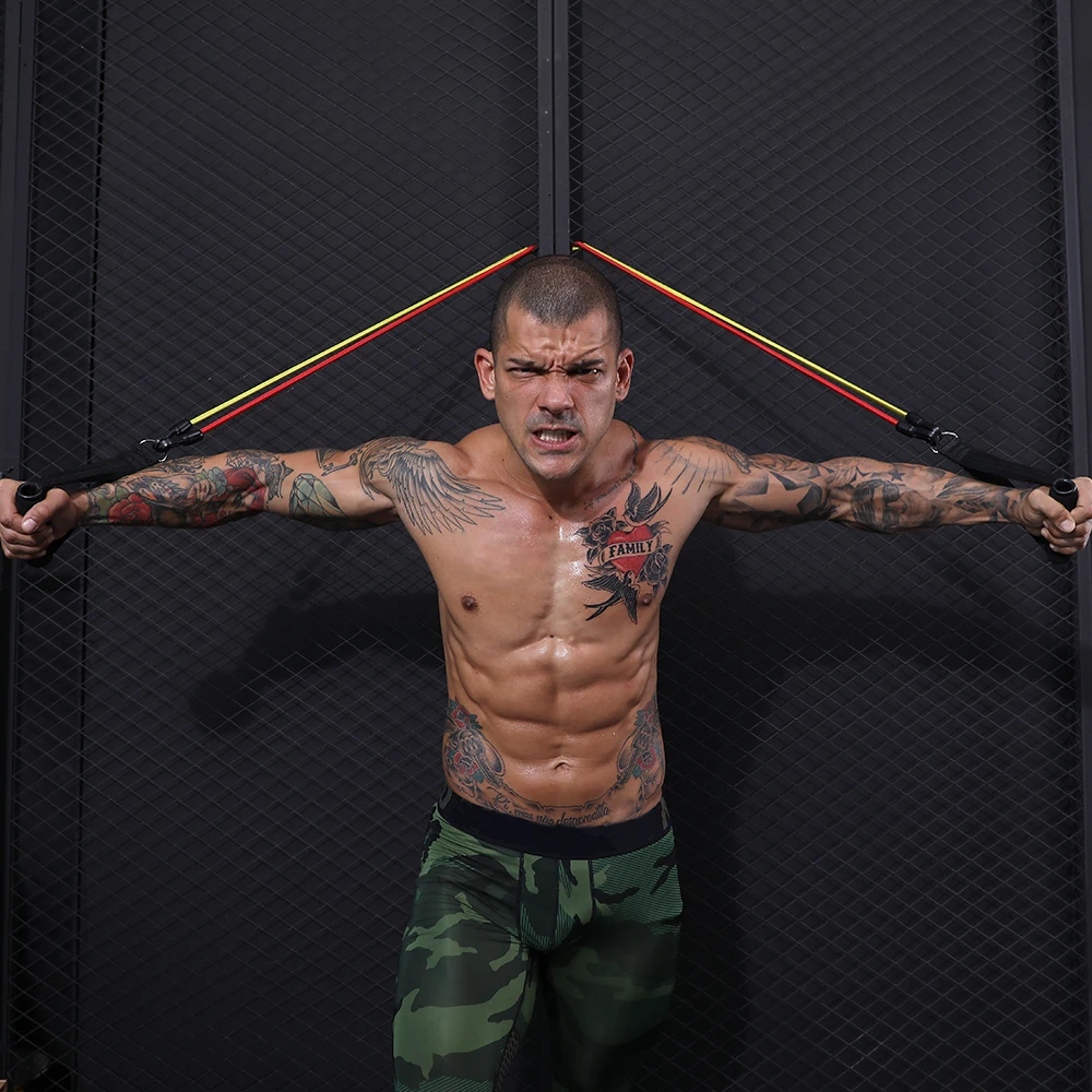 Kit completo: el juego de bandas de fitness de 11 piezas consta de 5 bandas de tubo, 2 manijas acolchadas, 1 ancla de puerta, 2 correas de tobillo y 1 correa con hebilla en D.Con este kit de entrenamiento completo, nunca perderá ninguna posibilidad de desafiar diversas dificultades de entrenamiento para desarrollar fuerza y tonificar los músculos.