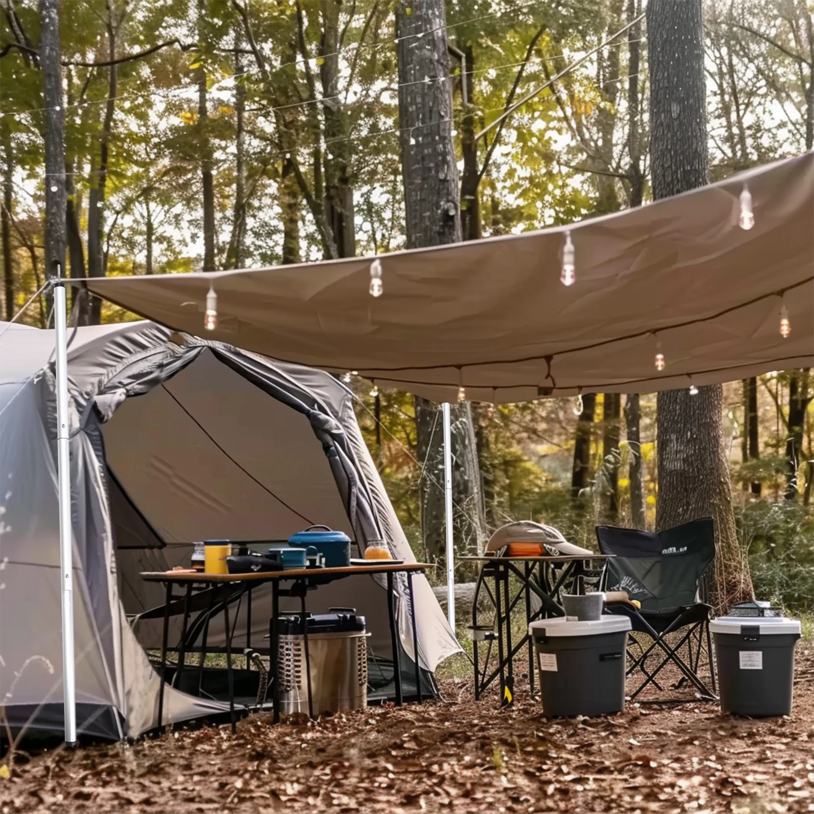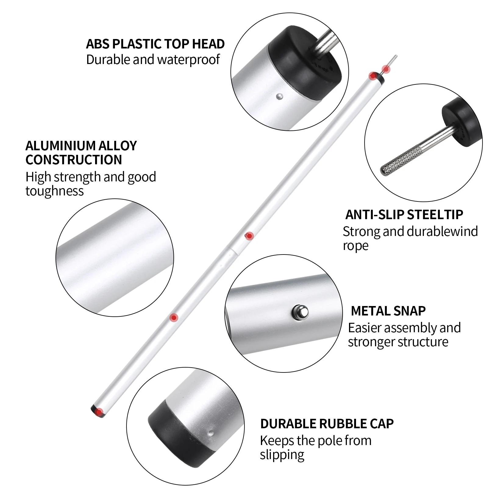 Multiusos --Los postes de la tienda para viajes se pueden utilizar como soporte de la puerta de la tienda, toldo, toldo, u otros usos refugio de playa, una herramienta esencial para sus viajes al aire libre.