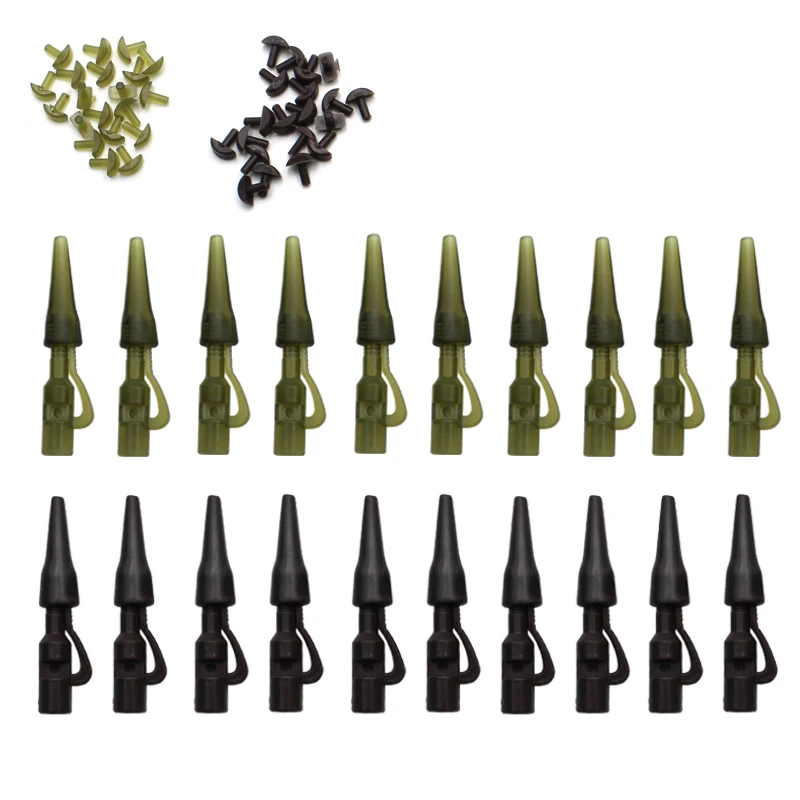 Juego de 20 Clips de plomo de seguridad para pesca de carpa con fundas de goma de cola que pueden caber con giratorios tamaño 8 para accesorios de aparejos de pesca de carpa
