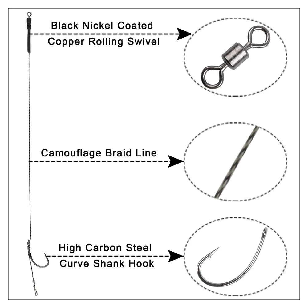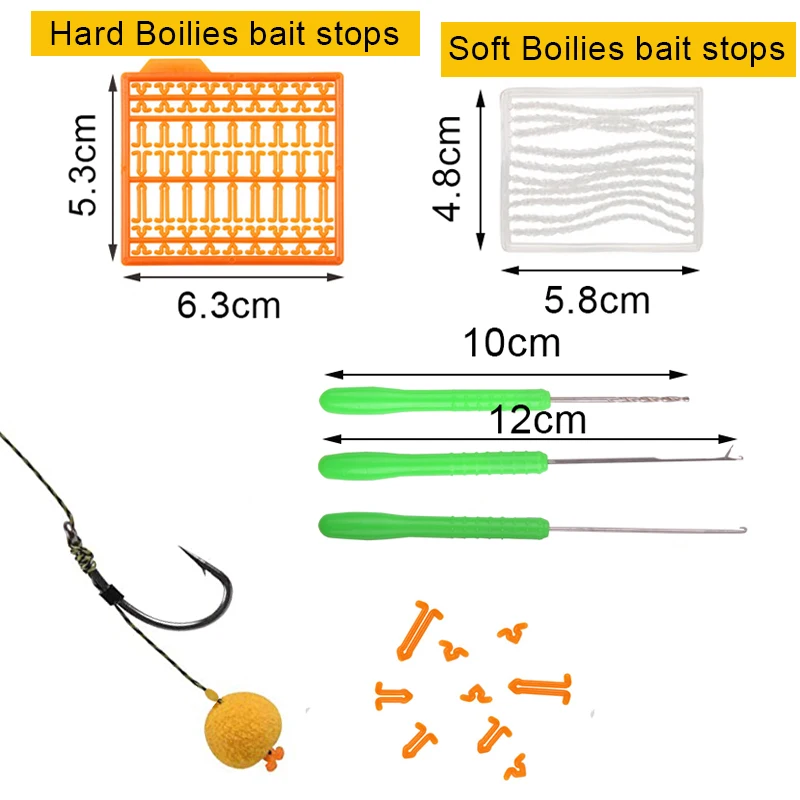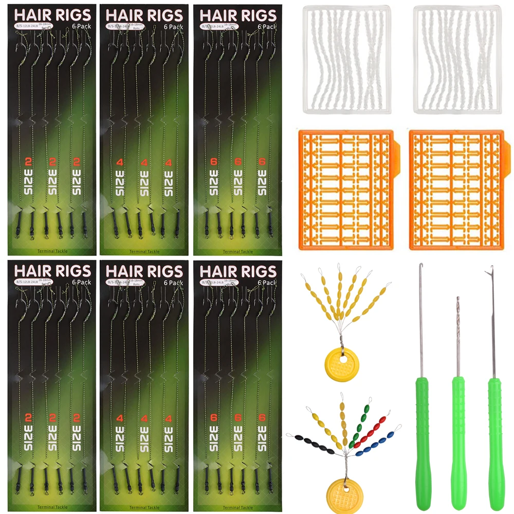 Juego de 45 aparejos de pesca de carpa listos para usar, anzuelos atados con Boilies, cebo, topes para carpas, cebos, agujas, herramientas, aparejos terminales