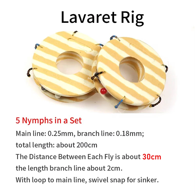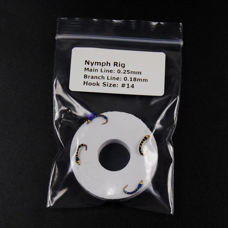 [5 Juegos] Nymph Lavaret Rig Cod / Whiting / Perch Live Bait Fish Sabiki Aparejos de pesca Gold Head Black & Blue #14