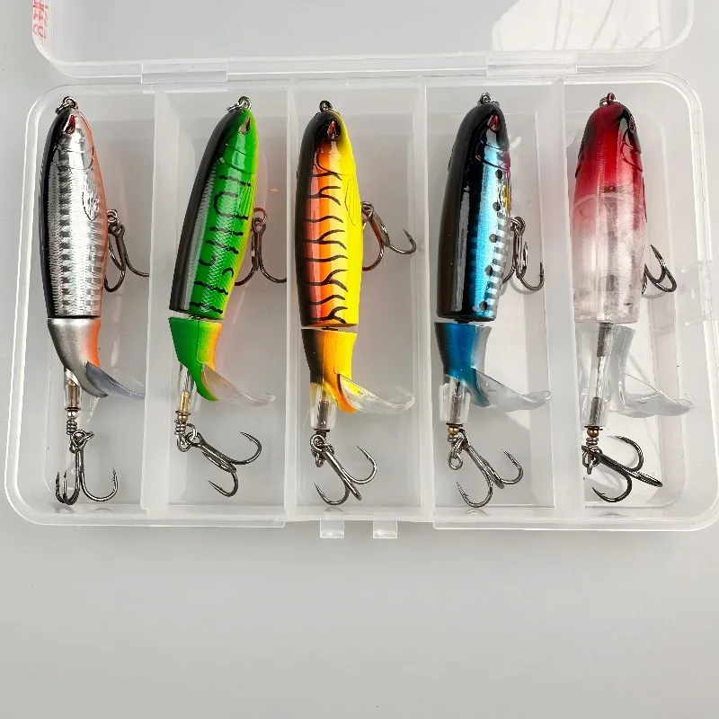 Juego de 5 Señuelos de Pesca Road Runner Spinnerbaits - Señuelos de Pesca de ABS y Acero al Carbono, Señuelo Duro Multiarticulado con Ojos 3D, Popper de Superficie