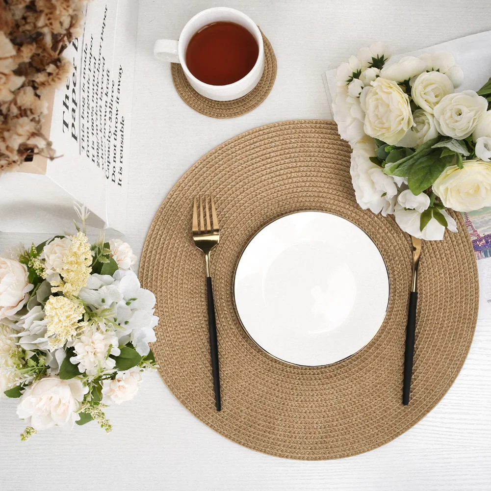 Manteles individuales trenzados redondos de 6 piezas y posavasos trenzados redondos de 6 piezas