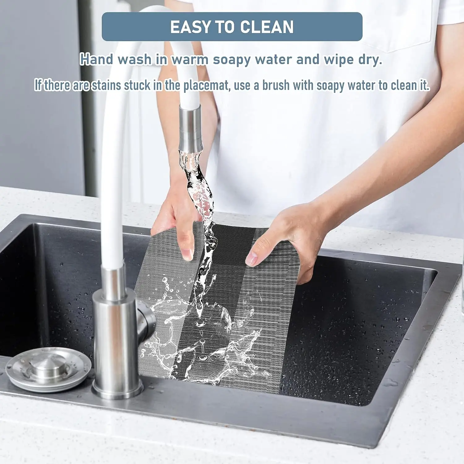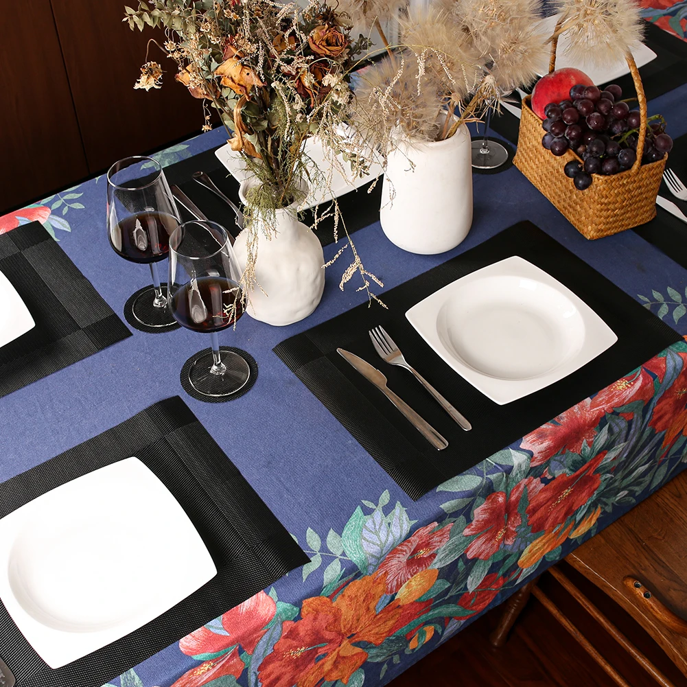 -- La mesa del comedor puede ser lavable, no se decolora, es fácil de limpiar, antideslizante, se limpia con un paño, se seca rápidamente, no se puede lavar a máquina, el líquido se puede pasar a través de ella.Si hay manchas pegadas en el mantel individual, use un cepillo y agua con jabón para limpiar y secar con un paño.