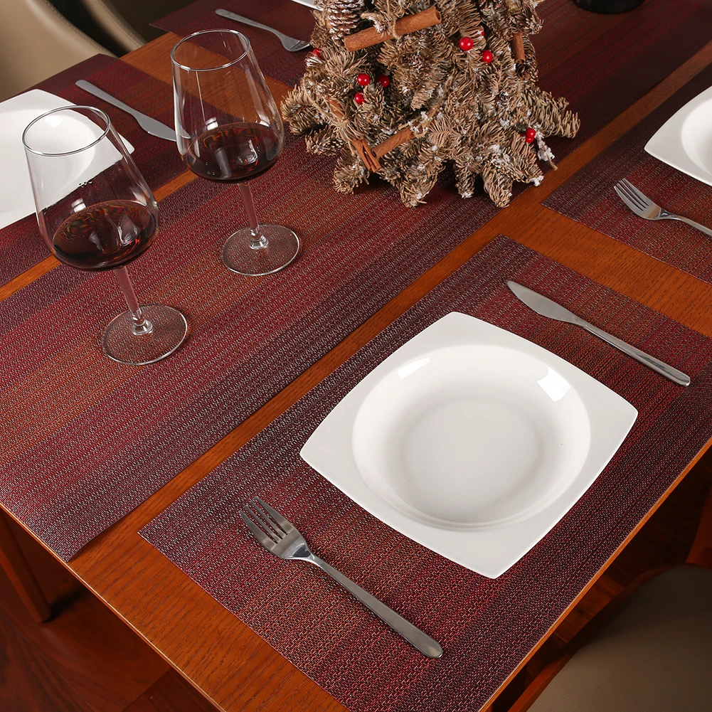 -- Los manteles individuales están hechos de material de PVC de alta calidad, su esquina tiene tecnología de sellado que elimina los bordes ásperos y es duradero y más grueso que los viejos.