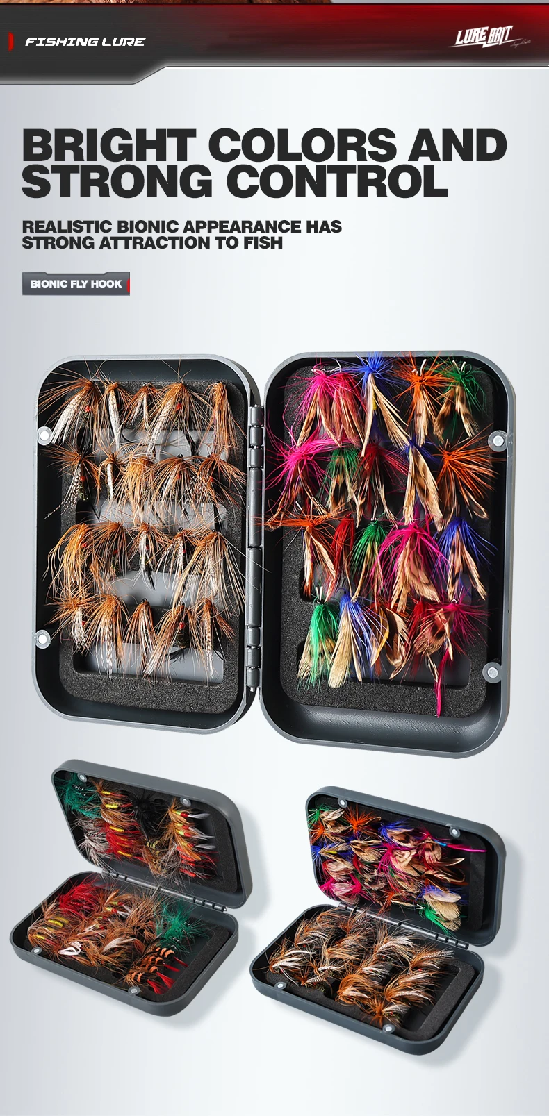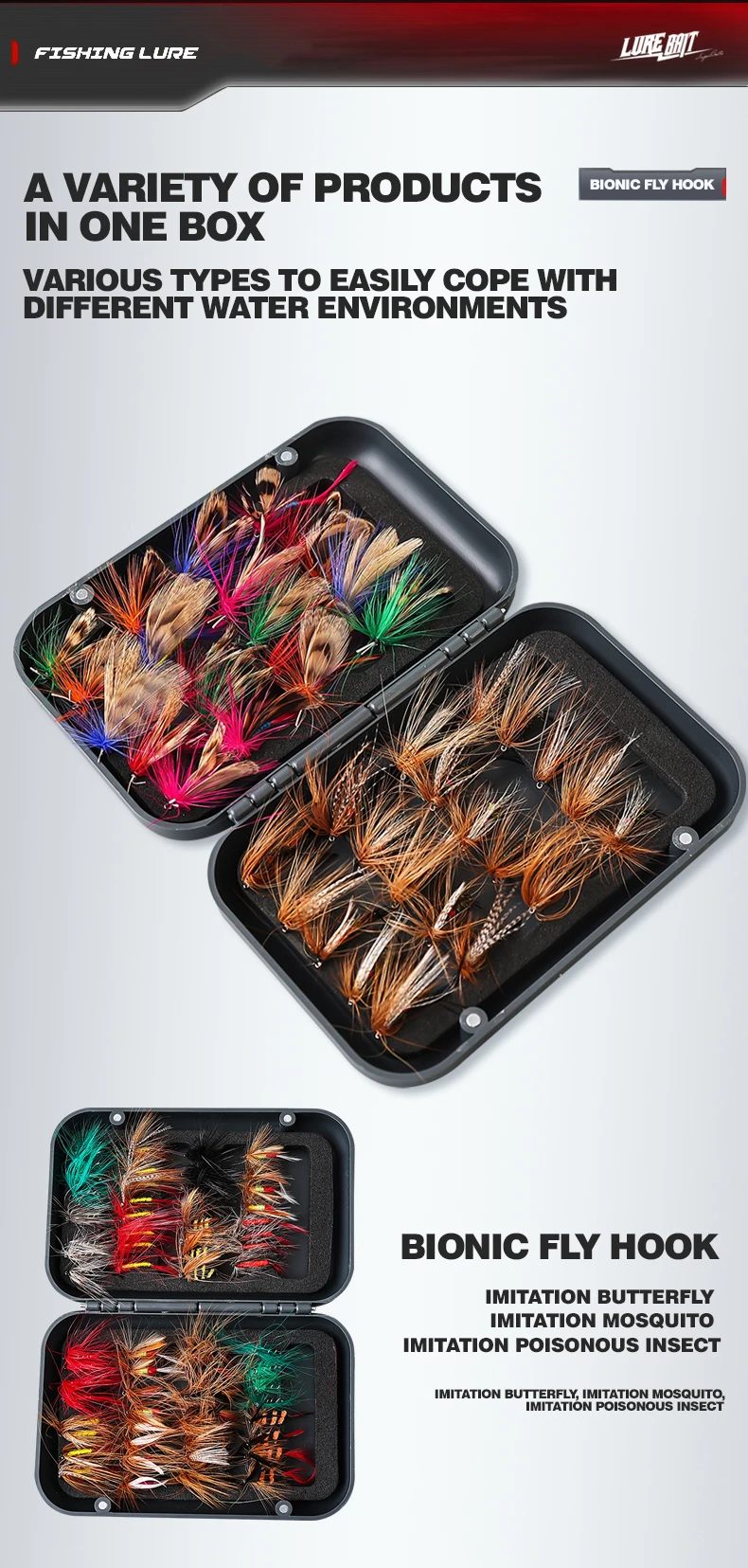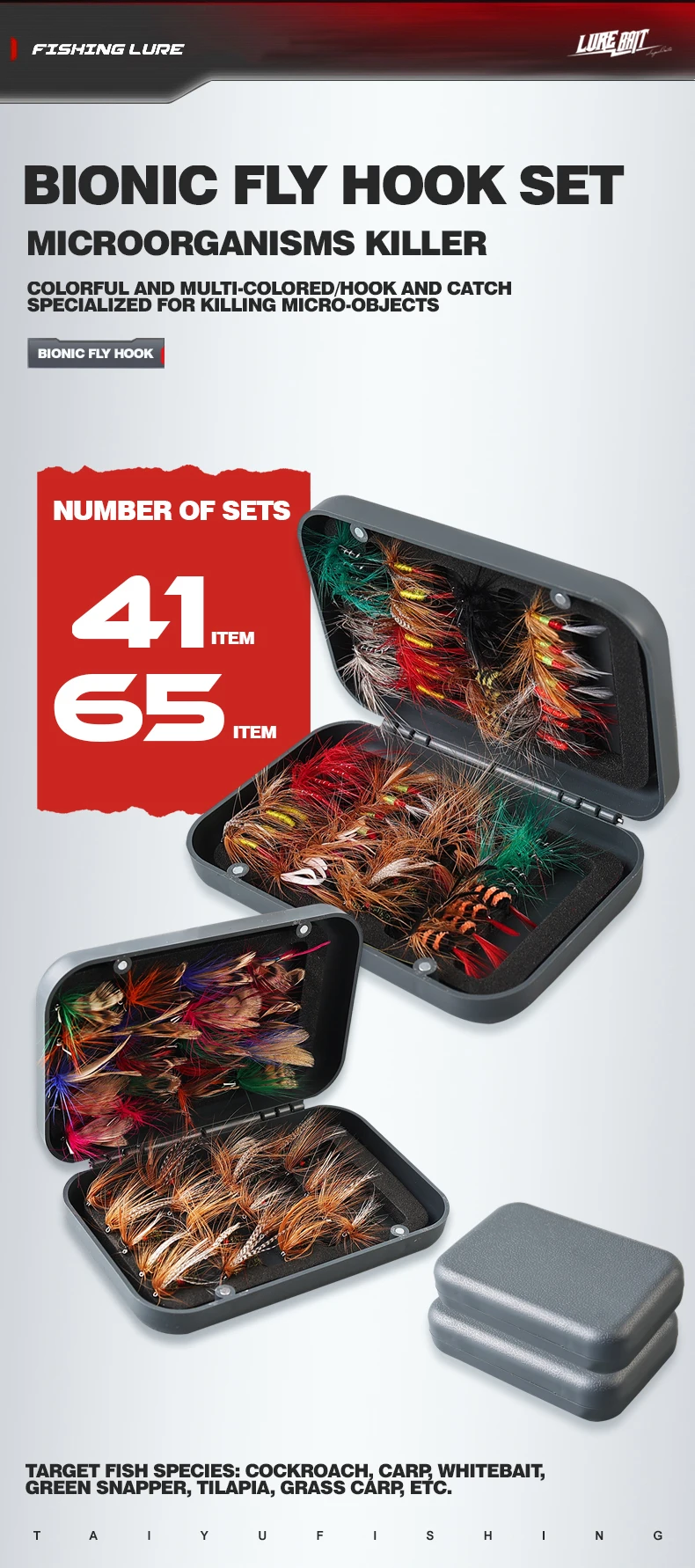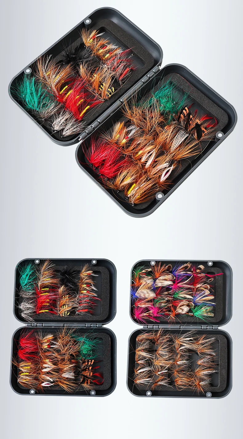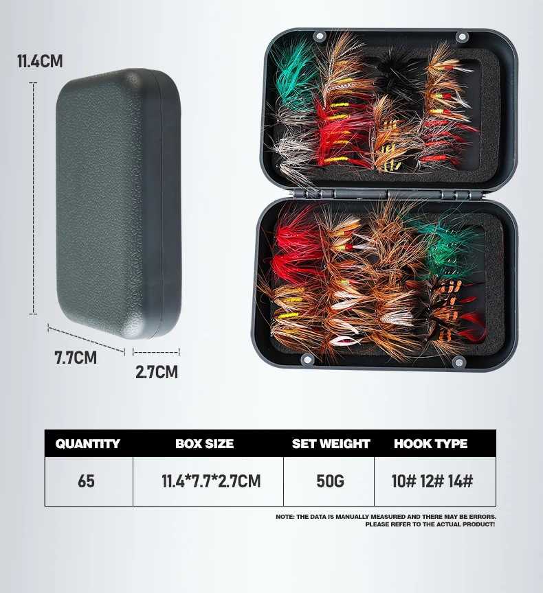 Aún no he probado los cebos, pero primero que nada, hay 64 y no 65, y muchos tienen alas mal atadas, por ejemplo, una en la dirección opuesta, otros tienen filamentos mal atados, lo que resulta en unos torcidos. Todo esto no me facilita la tarea de replicar un insecto. No lo devolví porque el precio es bajo de todos modos, y usaré los que están bien hechos.