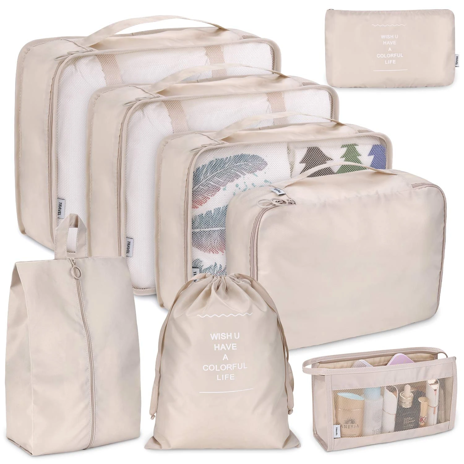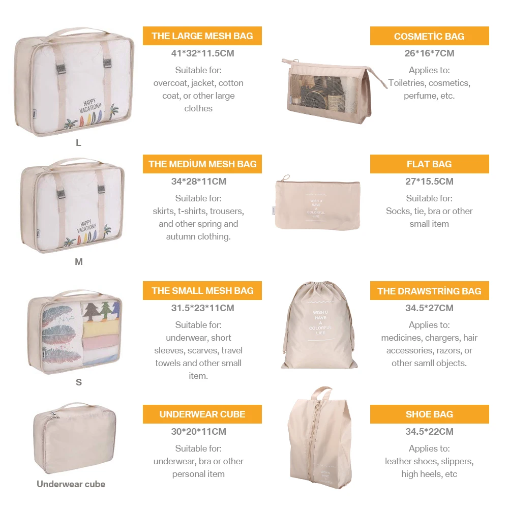 Con material de malla en la parte superior de los organizadores de equipaje de viaje, transparente y transpirable, le permite acceder y encontrar rápidamente el artículo que necesita. Ahorra tiempo y espacio en tu maleta.