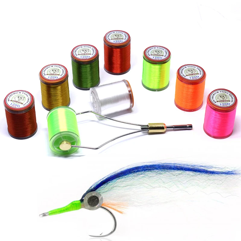 Juego de 8 carretes 120D hilo de atado de moscas de nailon continuo de alta resistencia incluso para materiales de atado de patrón de moscas de agua salada de caballa y sábalo