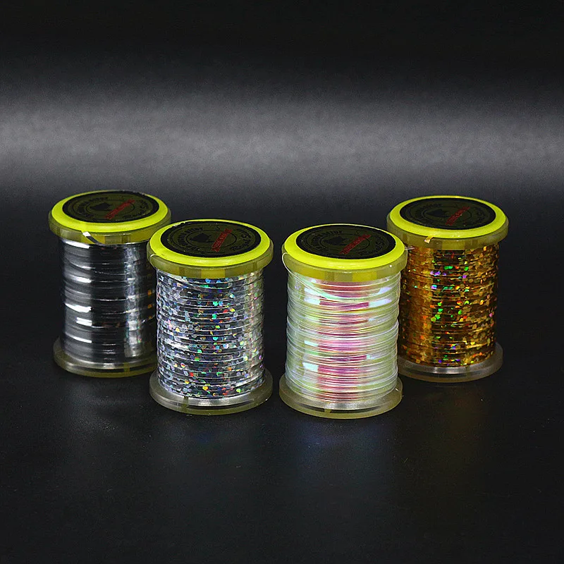 Especificaciones:Cinta de oropel enrollada para atar moscas, etc. MoscasColor: blanco nacarado, plata, oro Holo, plata holo surtida, cada color 2 carretesOropel ancho: 1mm; Longitud: tamaño mediano 1mm (35 yardas);Embalaje:Juego de 8 carretes (4 colores, cada color 2 carretes)