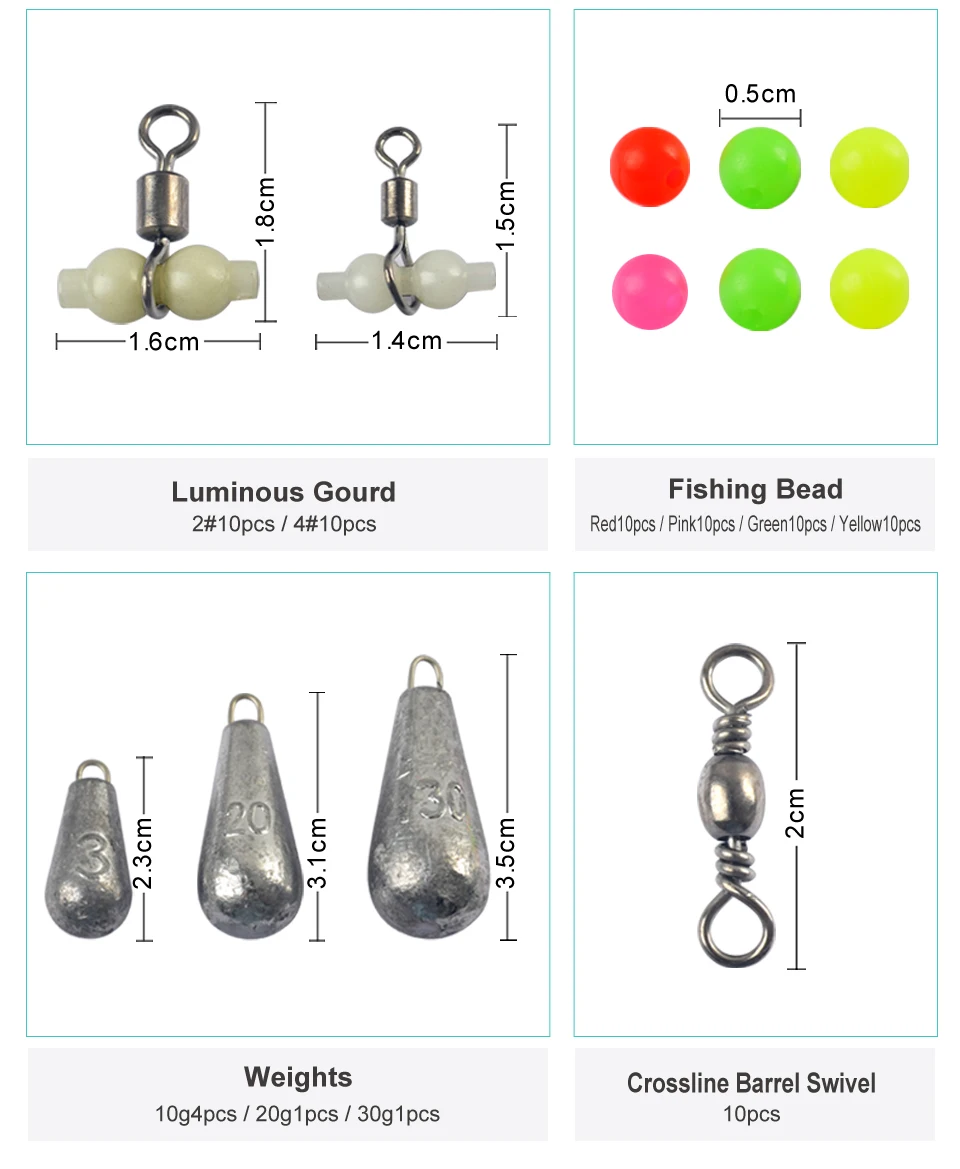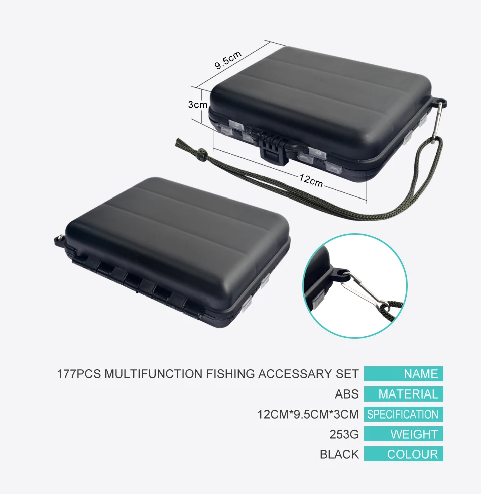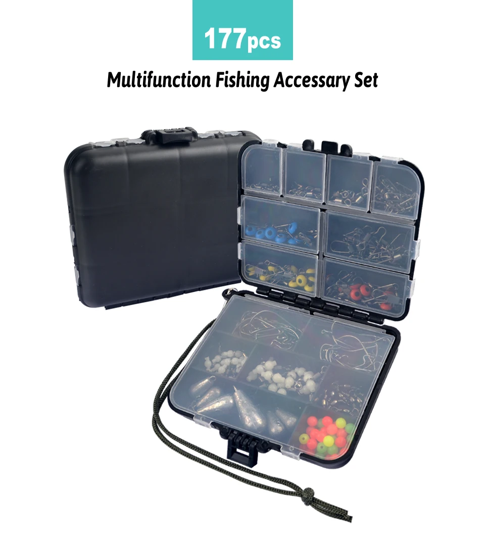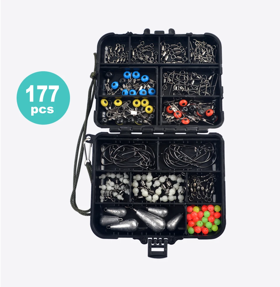 Juego de accesorios de pesca, 177 Uds., gancho de manivela, plomo, giratorios, conector a presión, cuentas luminosas, herramienta de pesca en el mar con caja de aparejos