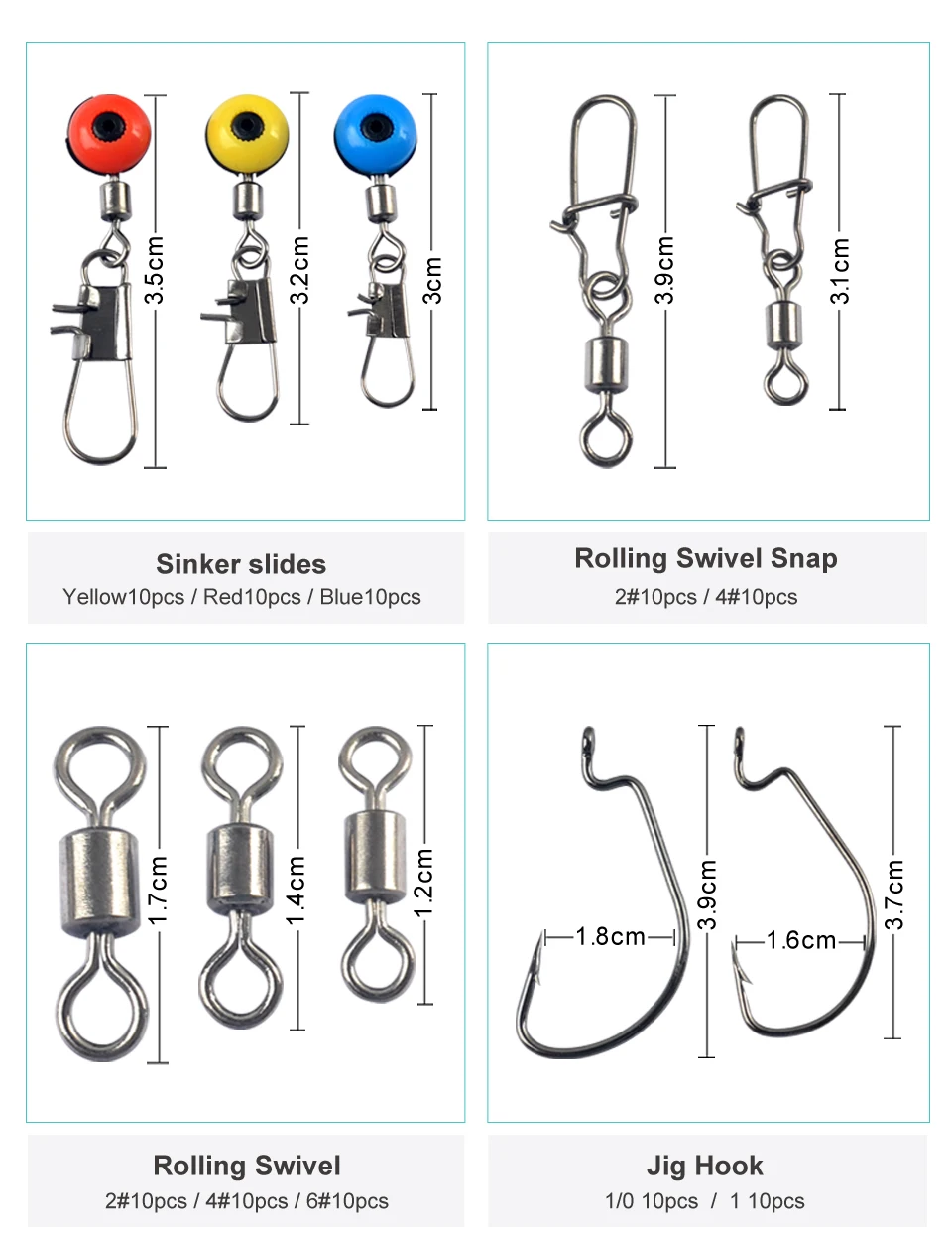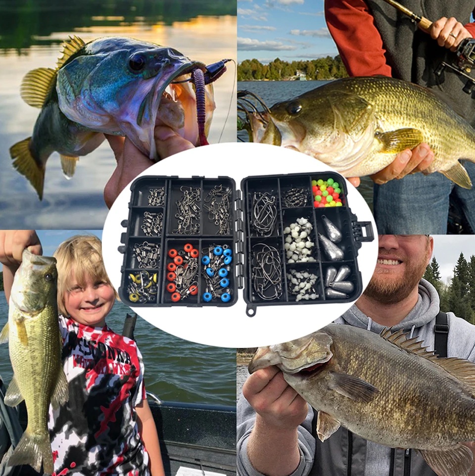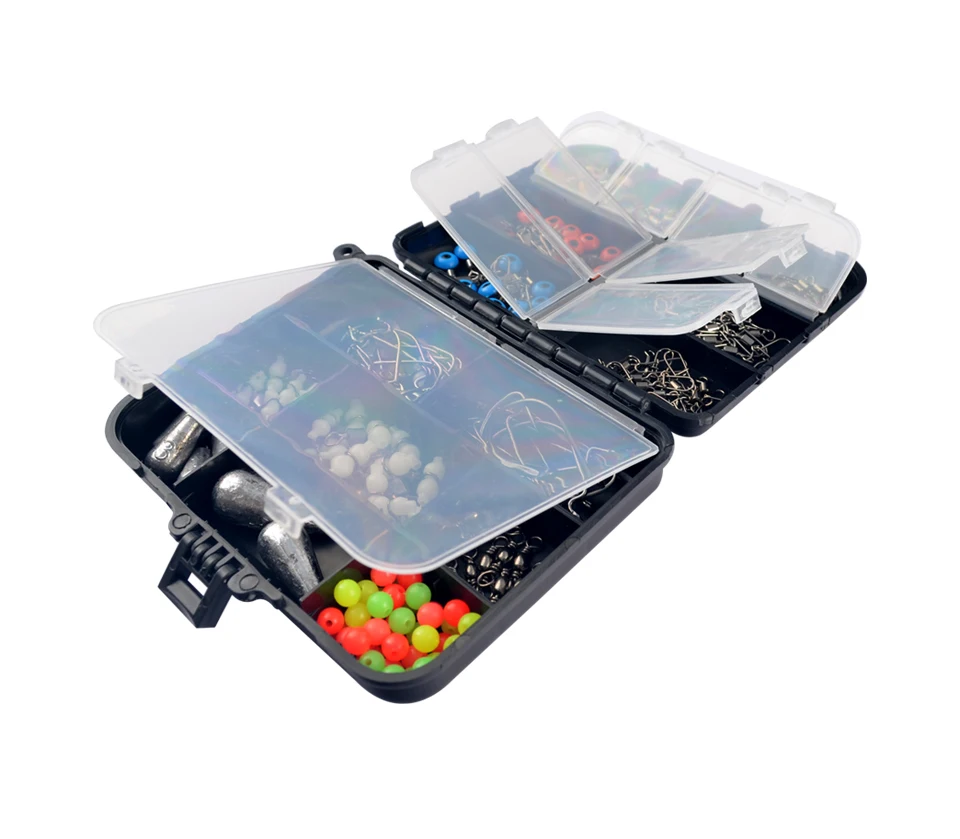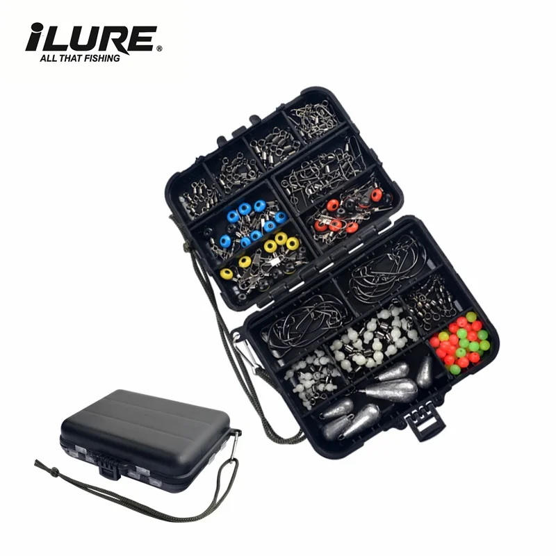 Juego de accesorios de pesca, 177 Uds., gancho de manivela, plomo, giratorios, conector a presión, cuentas luminosas, herramienta de pesca en el mar con caja de aparejos