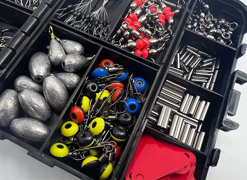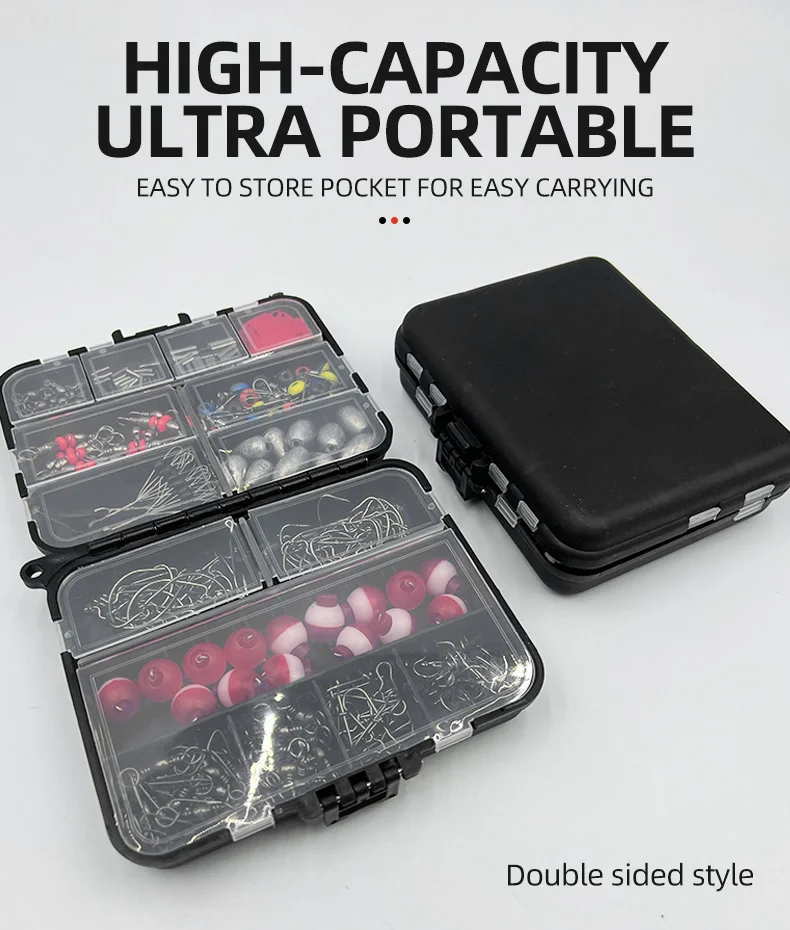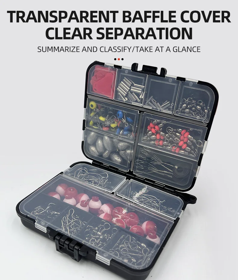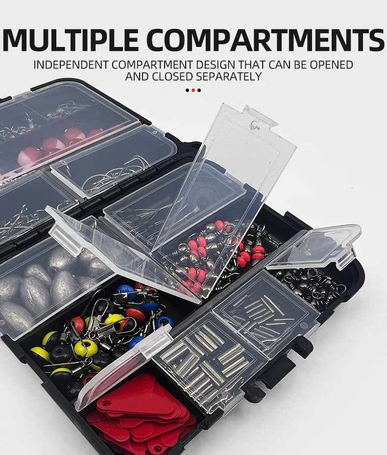 【Caja portátil】: los accesorios de pesca de carpas se colocan en una caja de almacenamiento de ABS de alta calidad, impermeable, con compartimentos, puede almacenar diferentes accesorios por separado y es fácil de identificar y acceder.