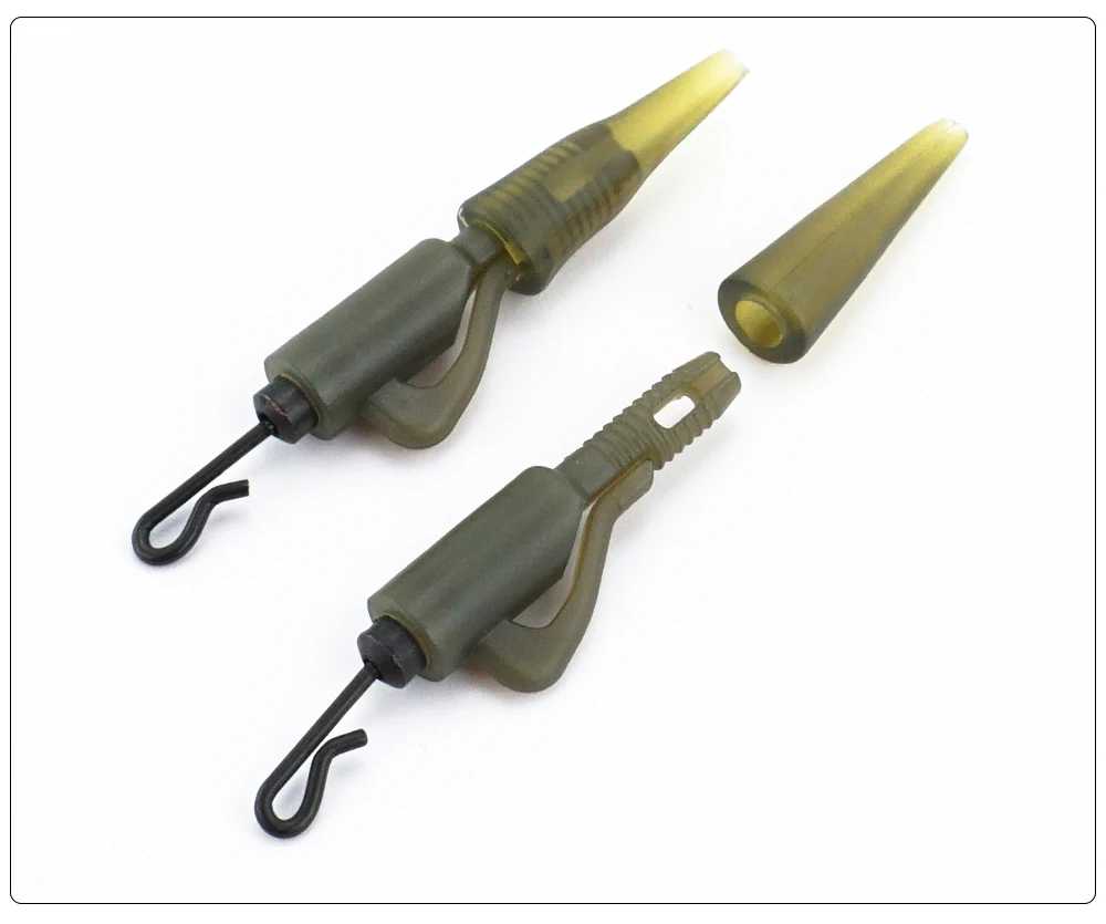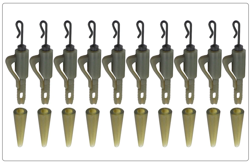 Juego de 10 accesorios de pesca de carpa, Clips de plomo híbridos de cambio rápido con cono de goma de cola, manga antienredos, aparejos de Terminal de pesca