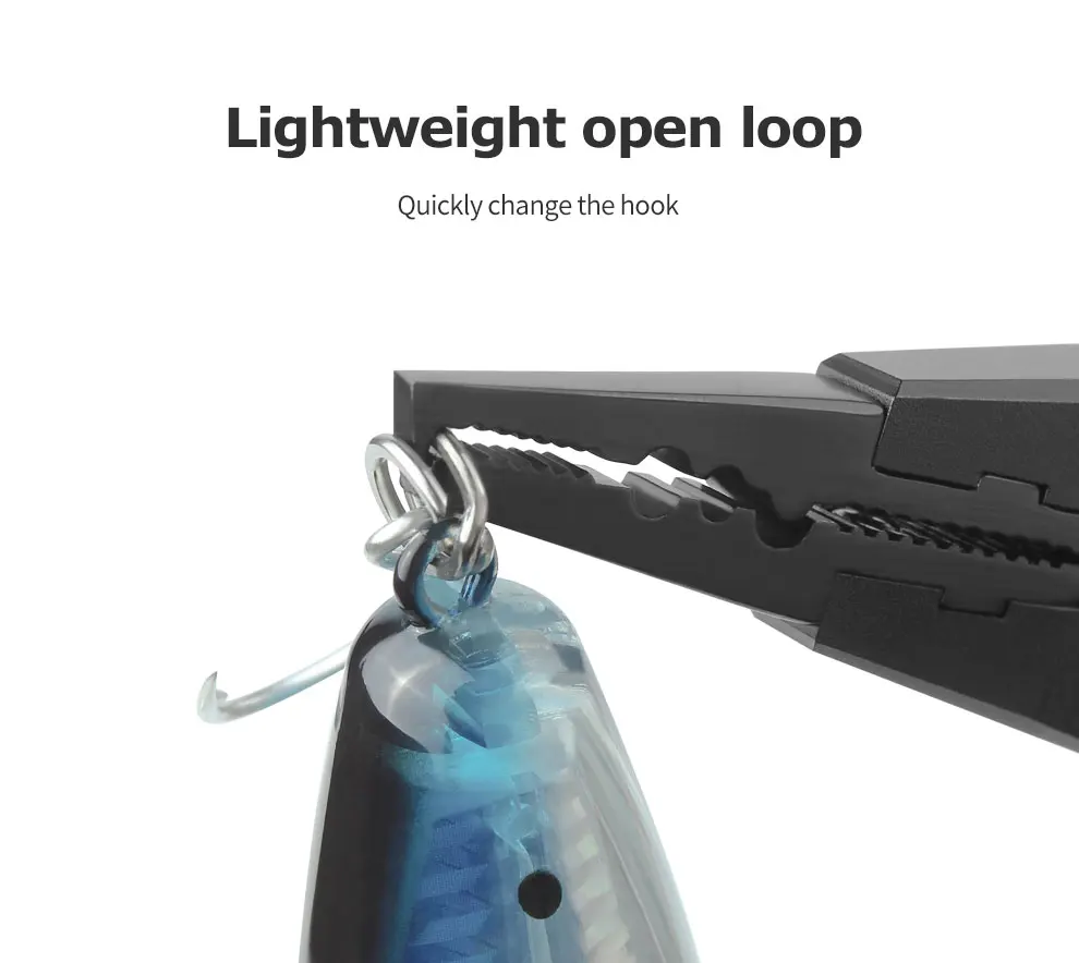 + Los alicates de pesca también pueden abrir el anillo de señuelo