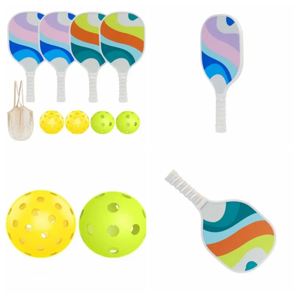 Material: madera Color: como se muestra Pickleball Tamaño de la paleta: 39*19*1,3 cm (15,35*7,48*0.512in) Pickleball tamaño de la bola: 7,2*7,2 cm/2,83*2.83in Características: fácil de llevar, antideslizante, ligero. El paquete incluye: 4 raquetas Pickleball, 4 bolas Pickleball, 1 bolsa de transporte. Gran juego de Pickleball: el juego de Pickleball incluye 4 raquetas de pickleball de madera Premium, 4 bolas y 1 bolsa de transporte. 2. Paletas Pickleball premium: hechas de tilo de calidad de 9 capas, lo que hace que la paleta Pickleball sea más fuerte y duradera, proporcionándote un impulso de potencia para cada golpe, lo que te permite controlar tus disparos con mayor potencia. 3. Agarre cómodo: La raqueta Pickleball tiene un agarre roscado acolchado, absorbe los golpes, es resistente al sudor, durante el uso reduce el deslizamiento, te hace más diestro y cómodo al balancear y golpear la pelota, no se cansa fácilmente incluso después de largos golpes. 4. Regalo Pickleball perfecto para: este juego de Pickleball es adecuado para todas las edades y todos los niveles de habilidad, es el regalo perfecto para los entusiastas del deporte, esta paleta de Pickleball atiende desde principiantes hasta profesionales.
