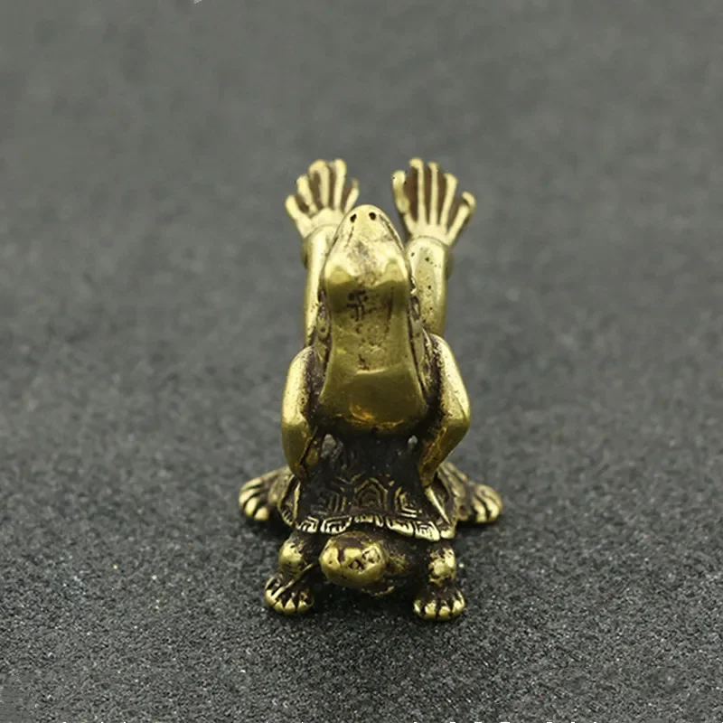 Juego antiguo de latón, tortuga, rana, estatua en miniatura, decoración de escritorio, decoración del hogar, escultura de bronce