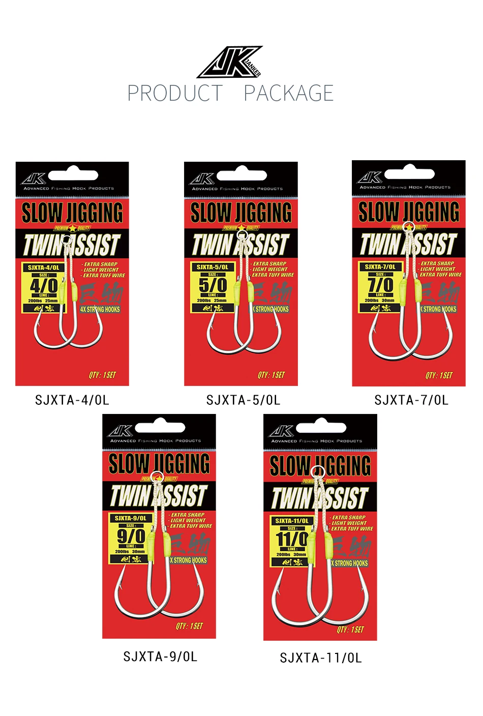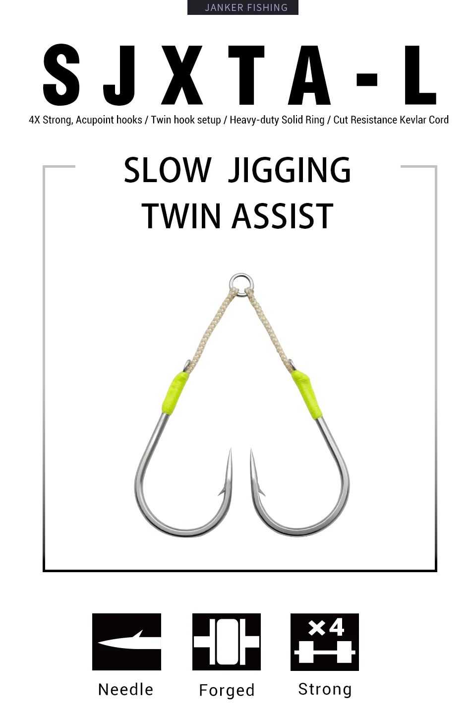 Juego de anzuelos de ayuda doble JK Kevlar Heavy 4X Strong 4/0 5/0 7/0 9/0 11/0, anzuelos de pesca de Jigging lento