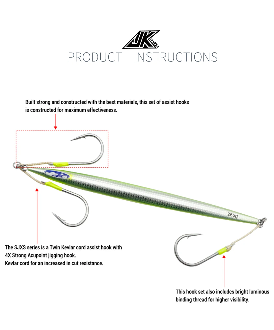 JK Kevlar Twin Assist Hook Set Heavy 4X Strong 4/0 5/0 7/0 9/0 11/0 Anzuelos de pesca Jigging lento