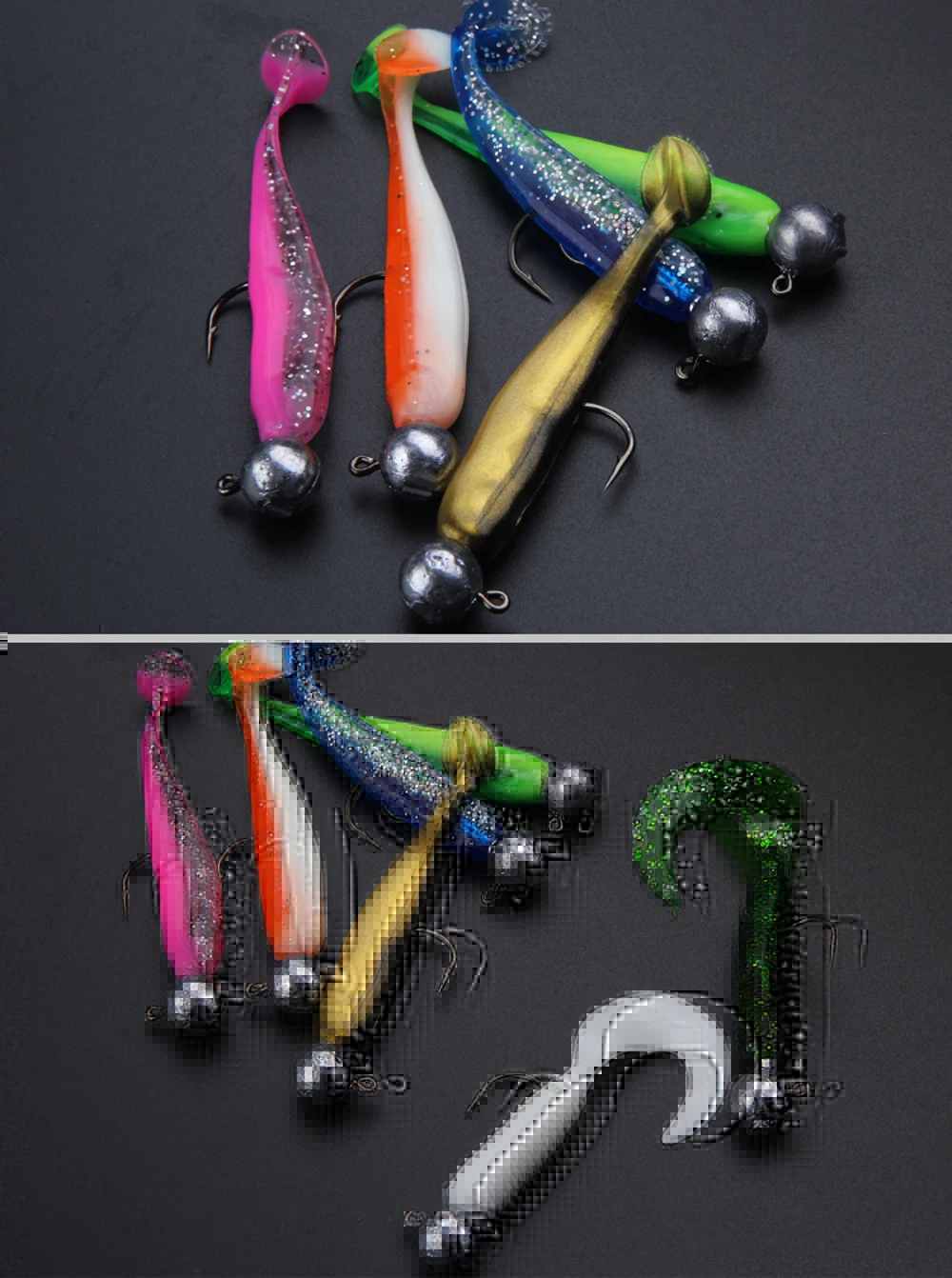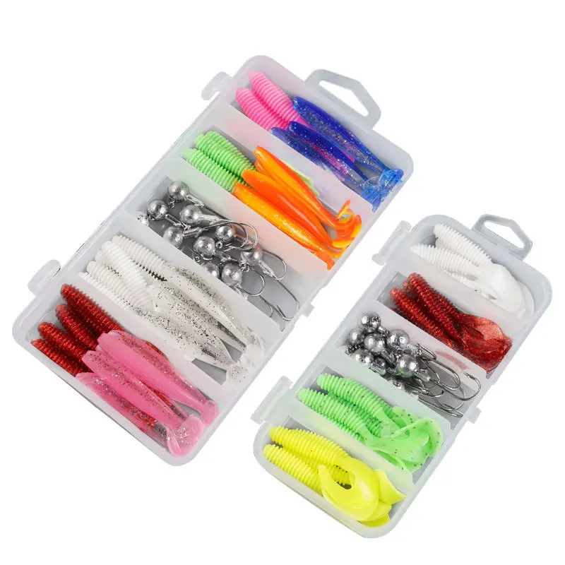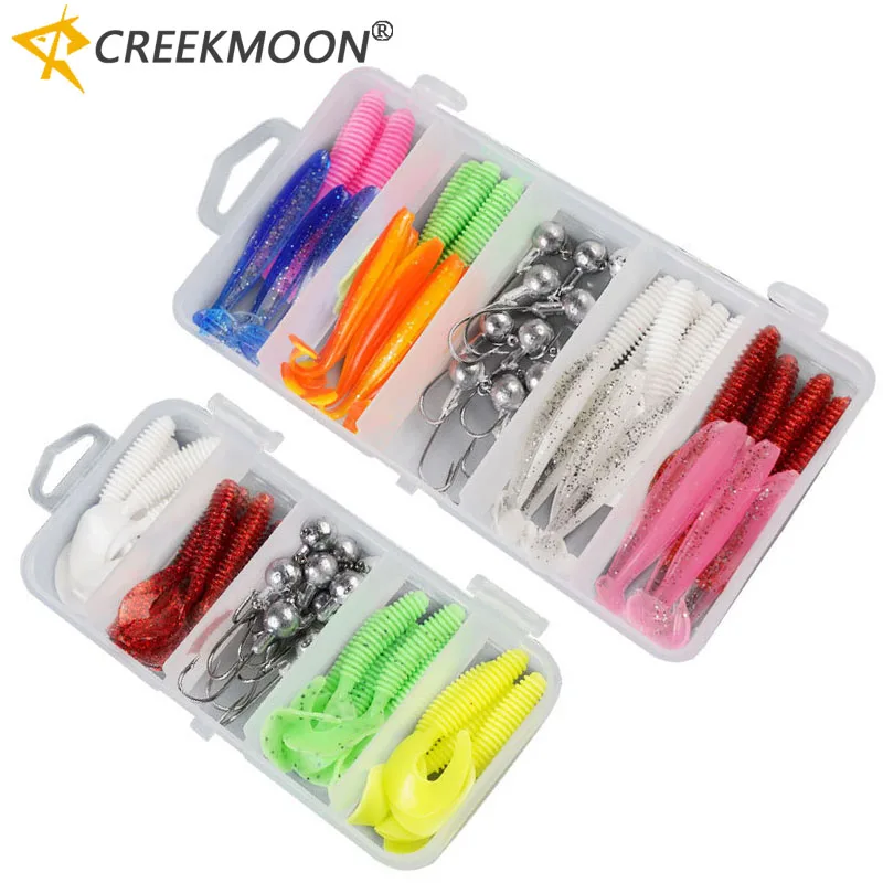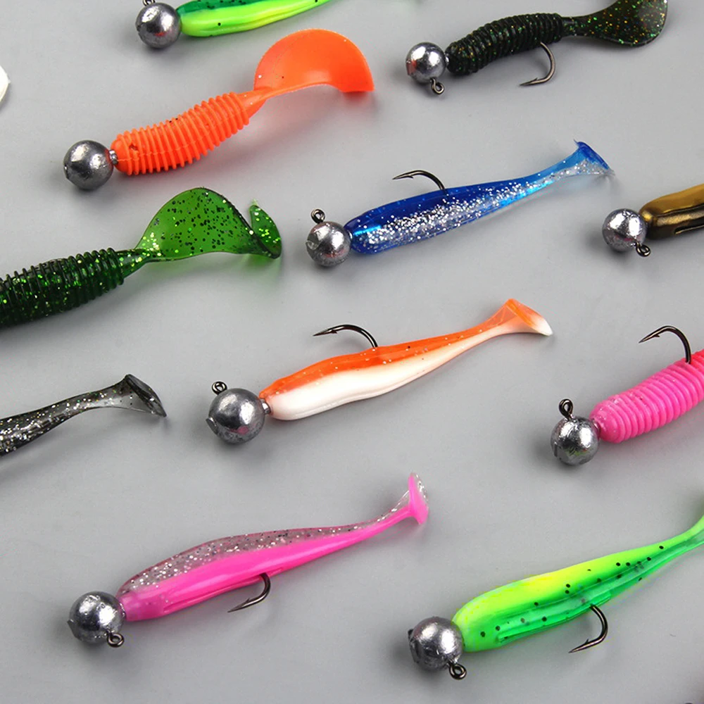 Juego de anzuelos de cabeza plomada y cebo blando, Kit de anzuelos de goma Artificial para carpa, Lucio, caja de aparejos, 35/40 piezas, 3,5g, 5g, 10g