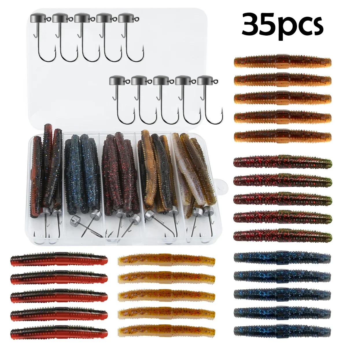 Juego de anzuelos de cebo de Pesca, cebos blandos de insectos en caja, cebo suave Luya, anzuelos de pesca al revés, Swimbait, equipo de Pesca, señuelo