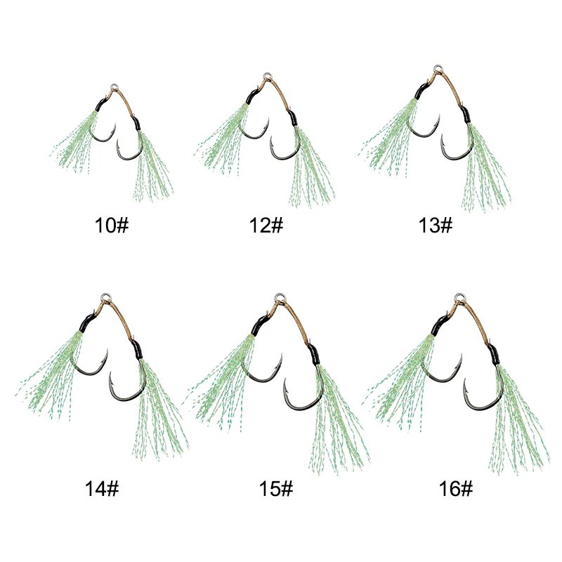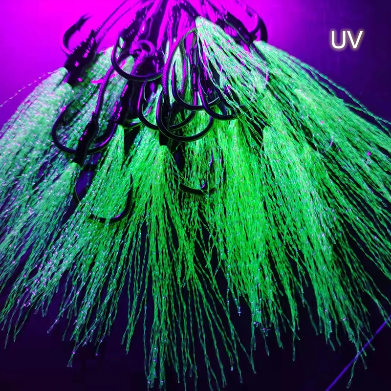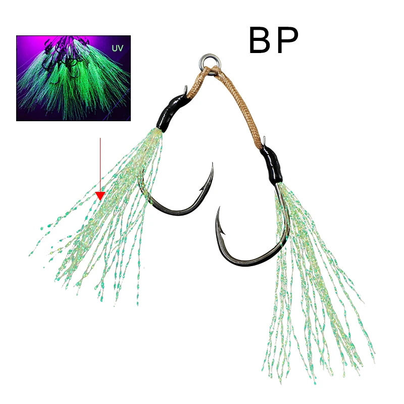 Juego de anzuelos dobles para pesca en el mar, juego de anzuelos de pesca con púas, luminosos UV, JK, BP-10PCS