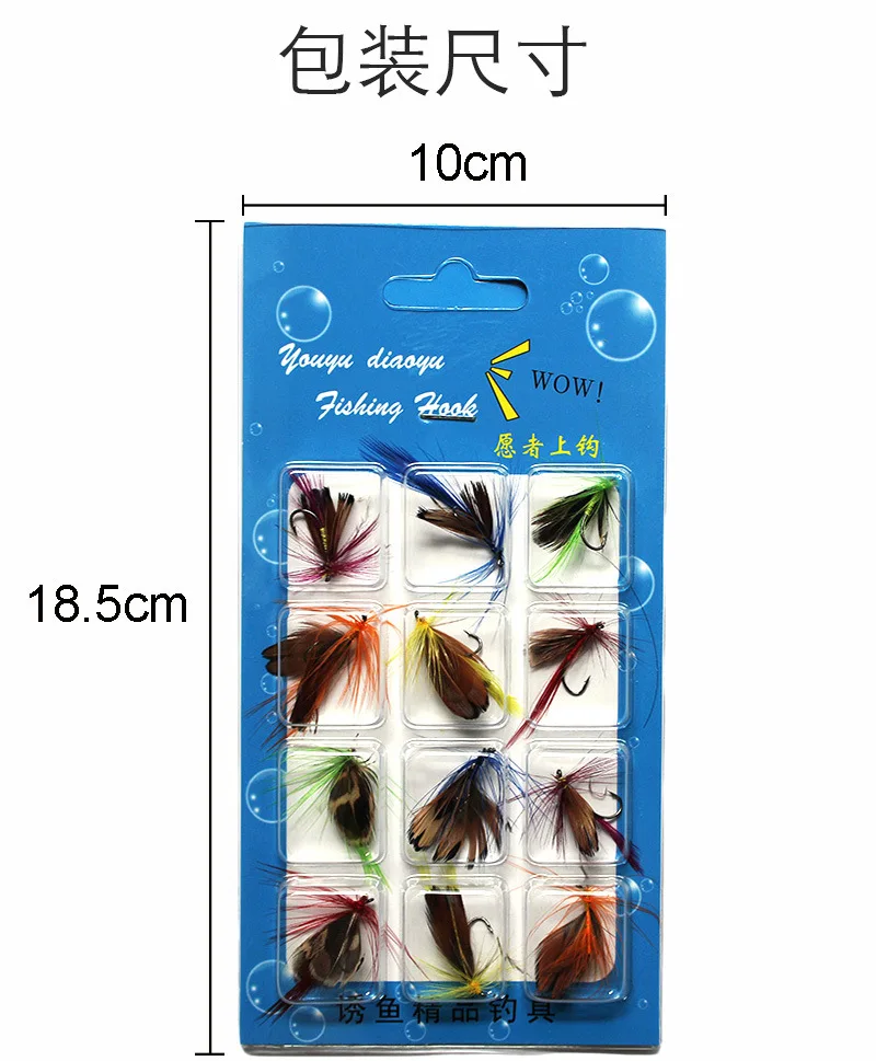 Juego de anzuelos con forma de mariposa para Pesca, cebos de plumas para mosquitos, cebos falsos para insectos, 12 piezas