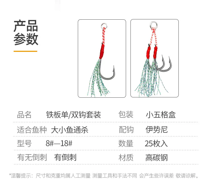 Juego de anzuelos de hierro para tanque de sangre, gancho individual/Doble-18 8 #, anzuelo de pesca grande resistente a la corrosión, accesorios de pesca para barco de mar, 25 piezas