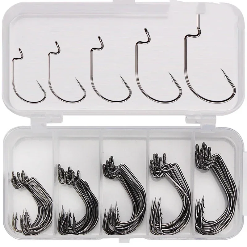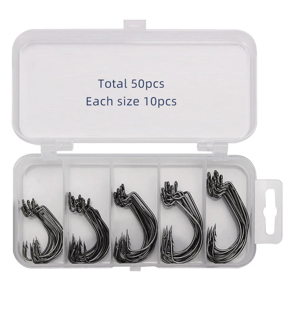 Juego de anzuelos de manivela, aparejos de pesca grandes, carpa, 50 unids/lote por caja, 2 #1 #1/0 #2/0 #3/0 #