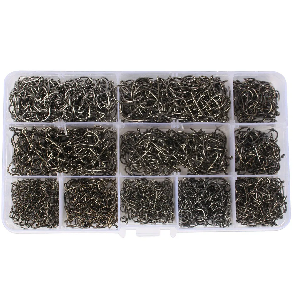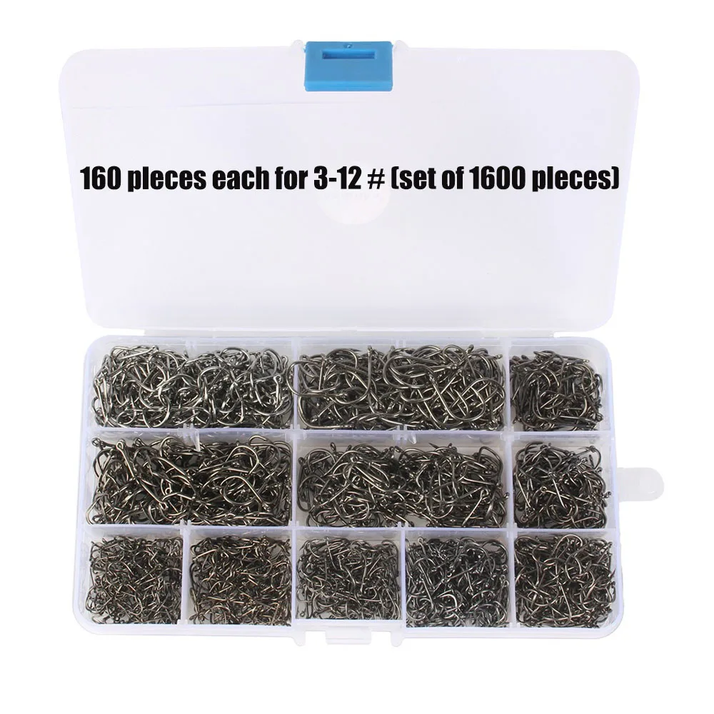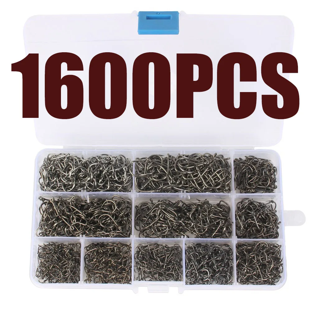 Juego de anzuelos de pesca de 1600 Uds., anzuelo de púas duradero afilado de acero rico en carbono, equipo de pesca en roca, accesorios de aparejos con bo