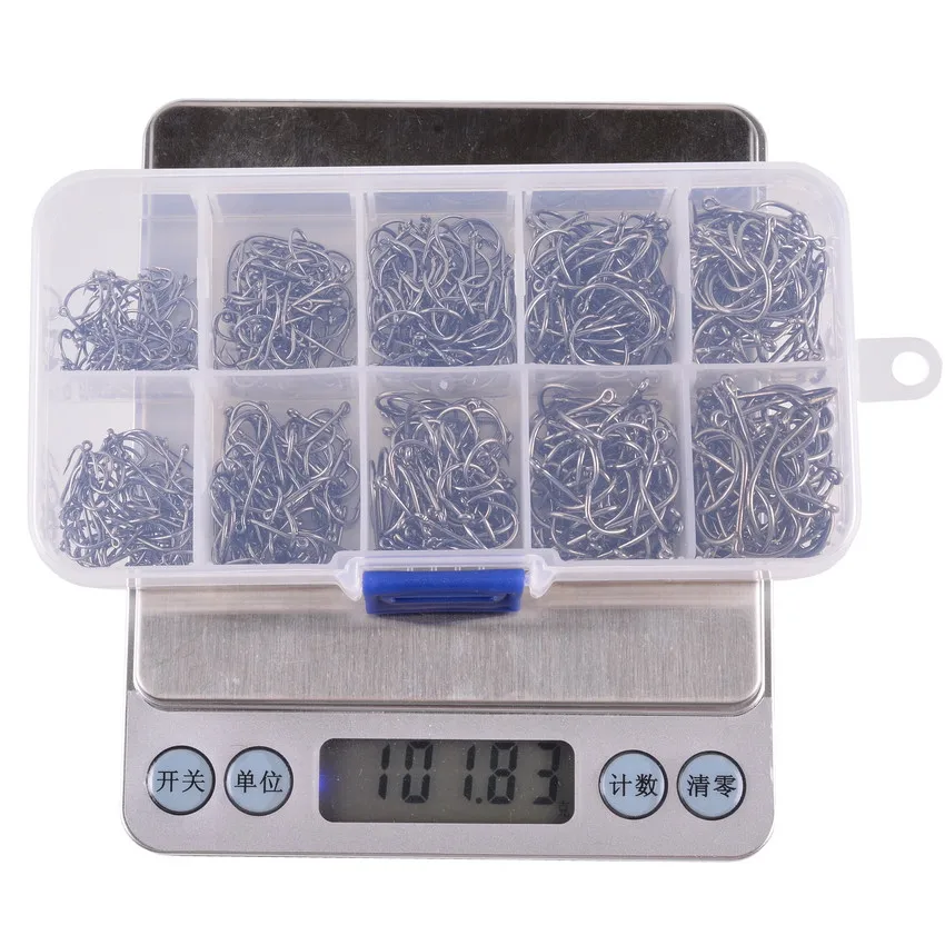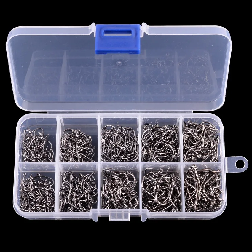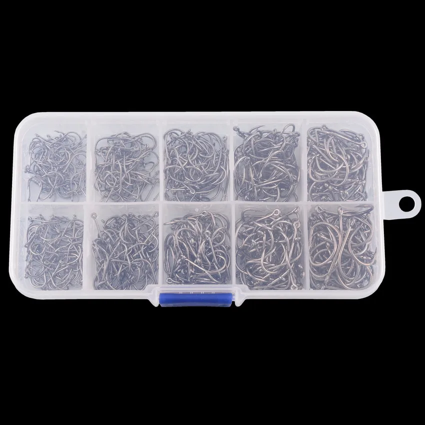 Juego de anzuelos de pesca de 200/300/400/500/600 piezas, anzuelos de púas de acero con alto contenido de carbono, aparejos de pesca para agua dulce y salada