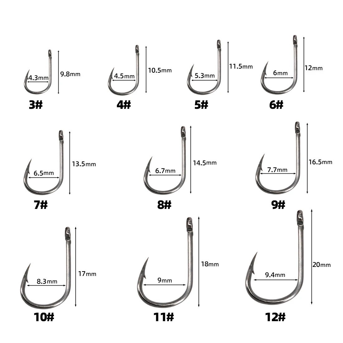 Juego de anzuelos de pesca de 400 Uds., anzuelos de púas de acero rico en carbono para accesorios de pesca de agua dulce y salada