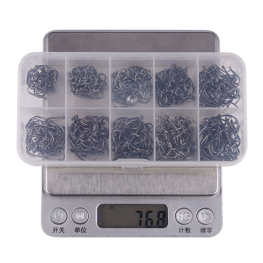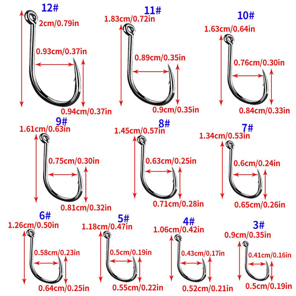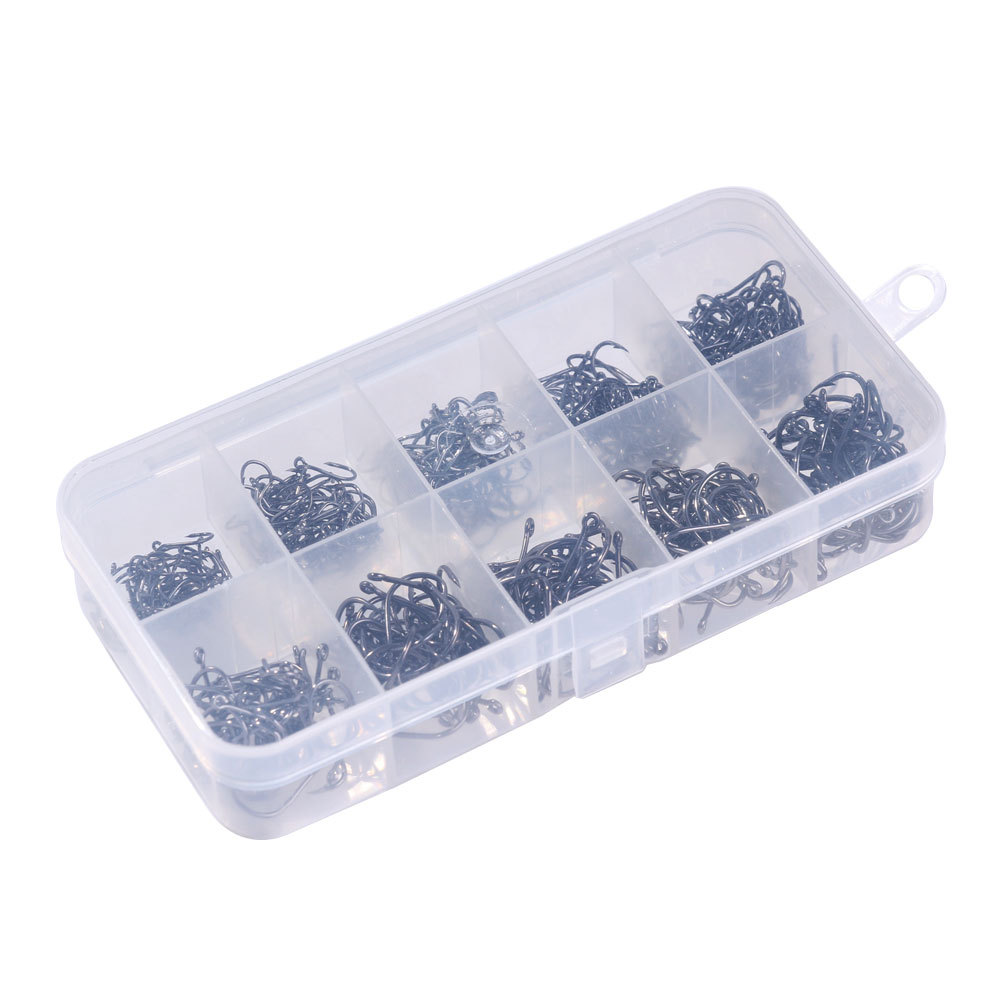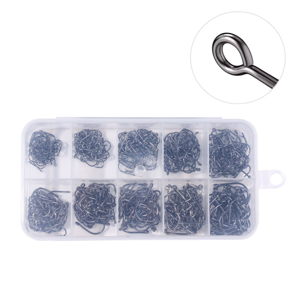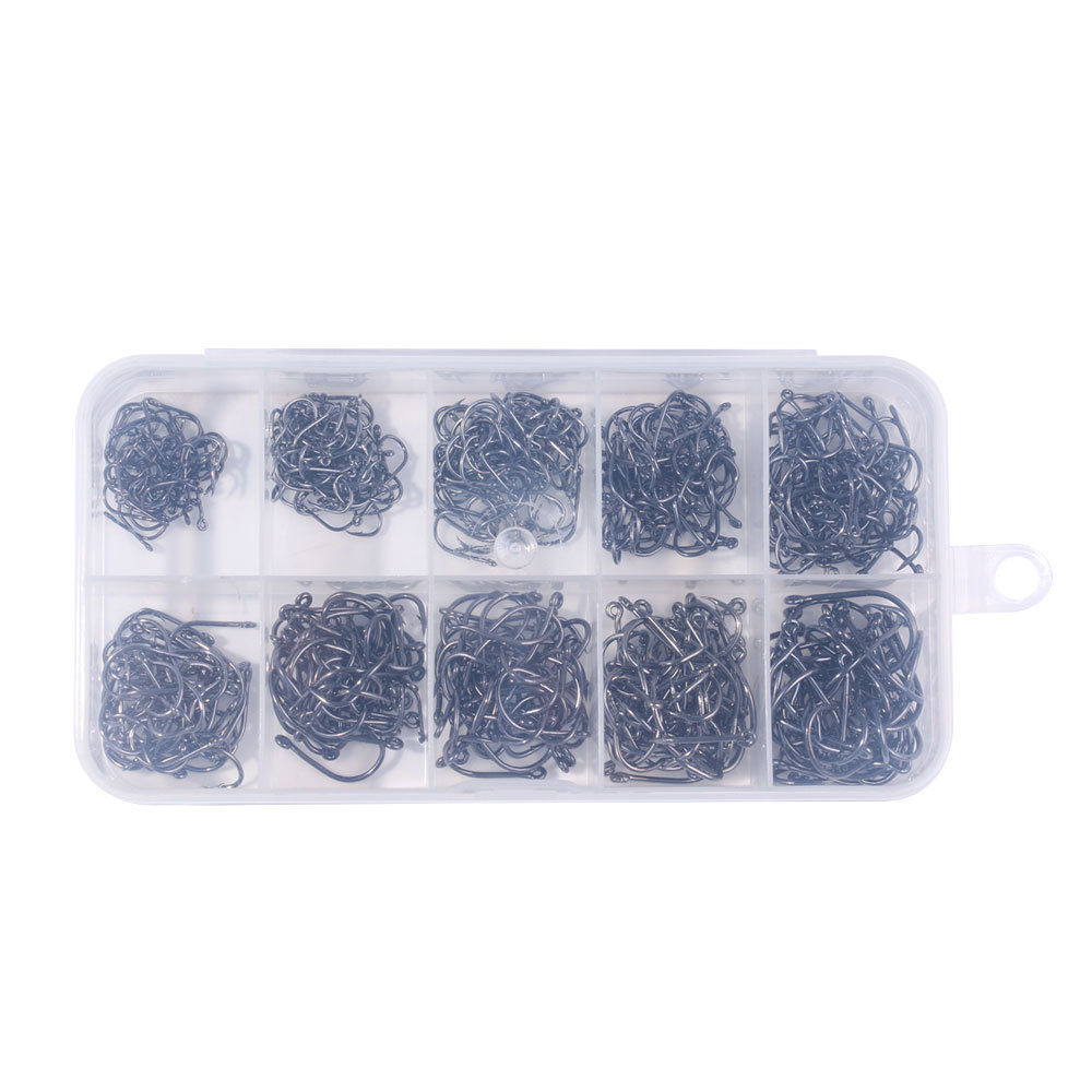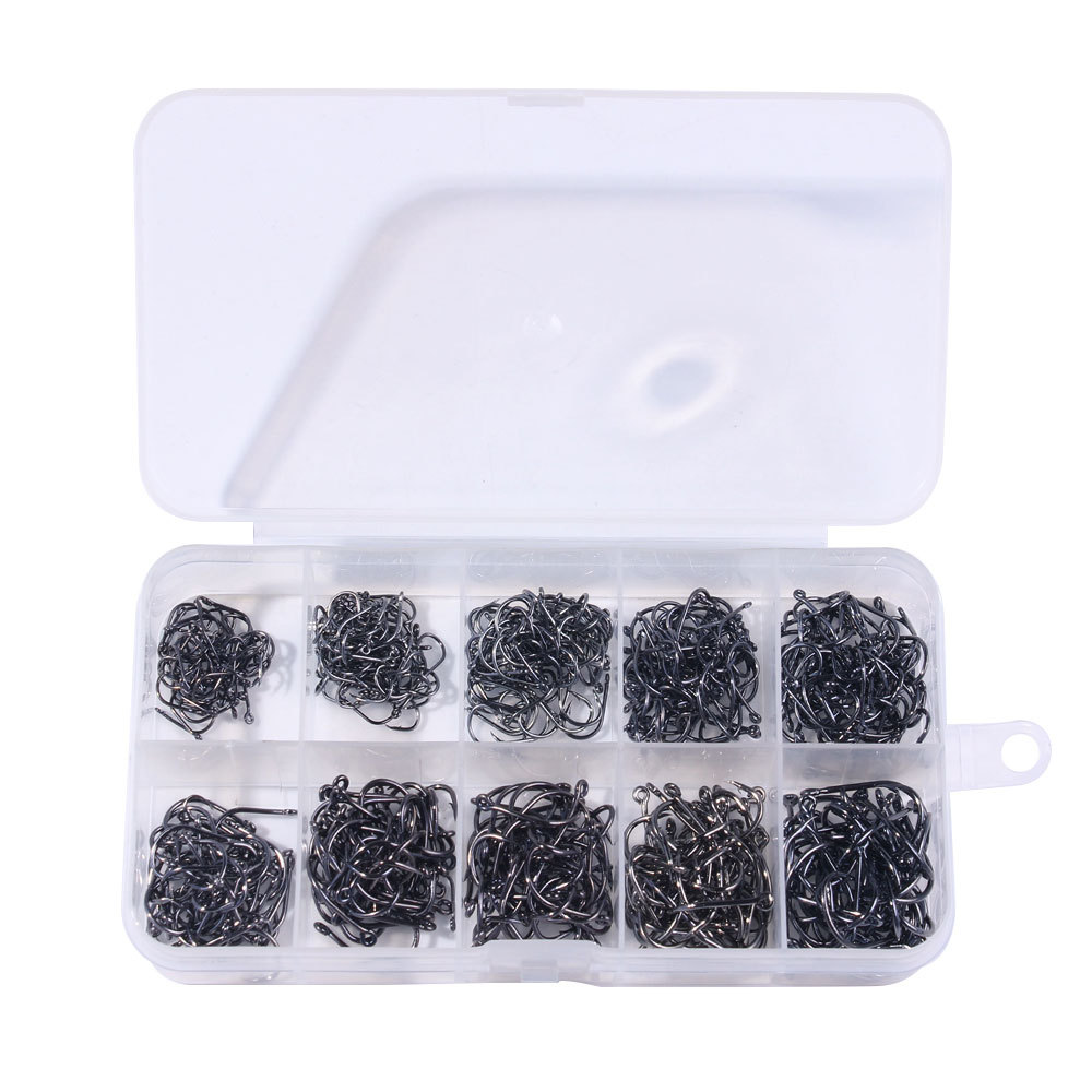 Juego de anzuelos de pesca de 500 piezas # 3- # 12 tamaños mixtos de acero rico en carbono, cuerda para carpa, anzuelo, accesorios de pesca, anzuelo circular compensado