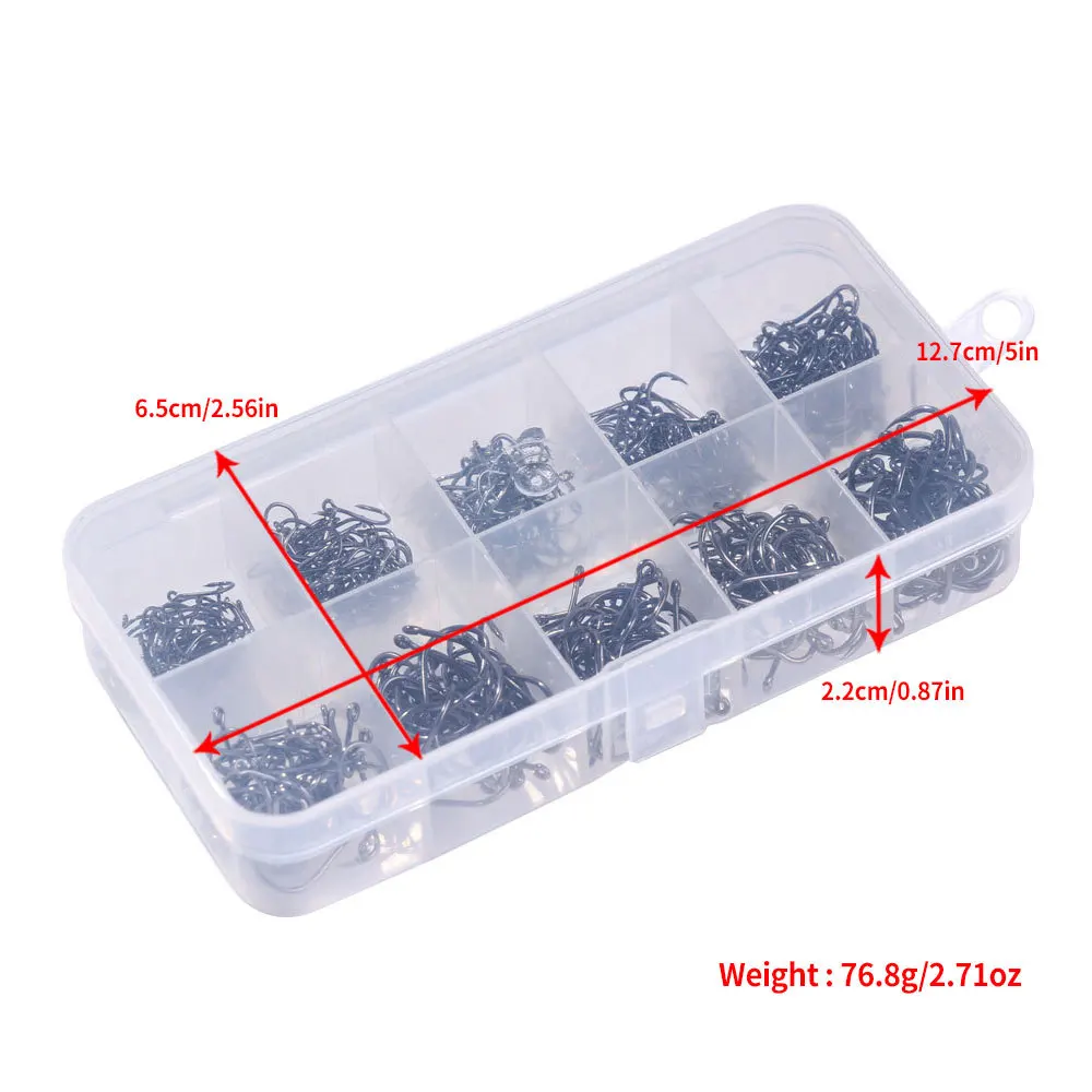 Juego de anzuelos de pesca de 500 piezas#3-#12 tamaños mixtos de acero con alto contenido de carbono, cuerda para carpa, anzuelo de pesca, accesorios de pesca, gancho circular desplazado