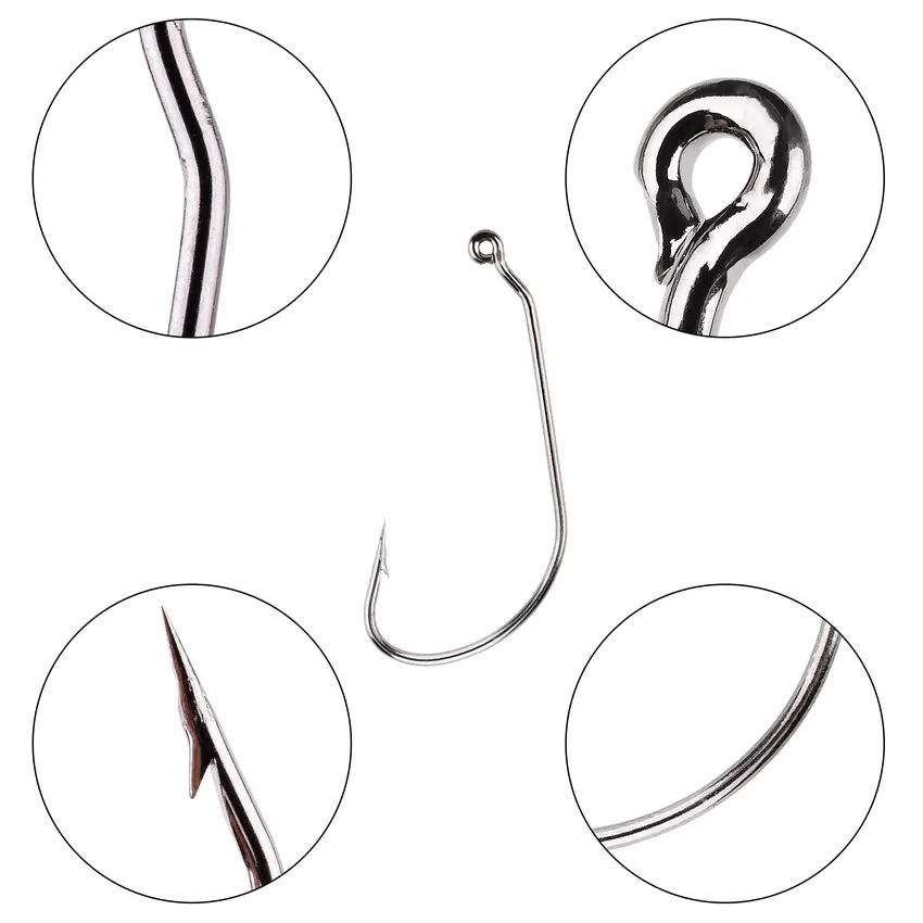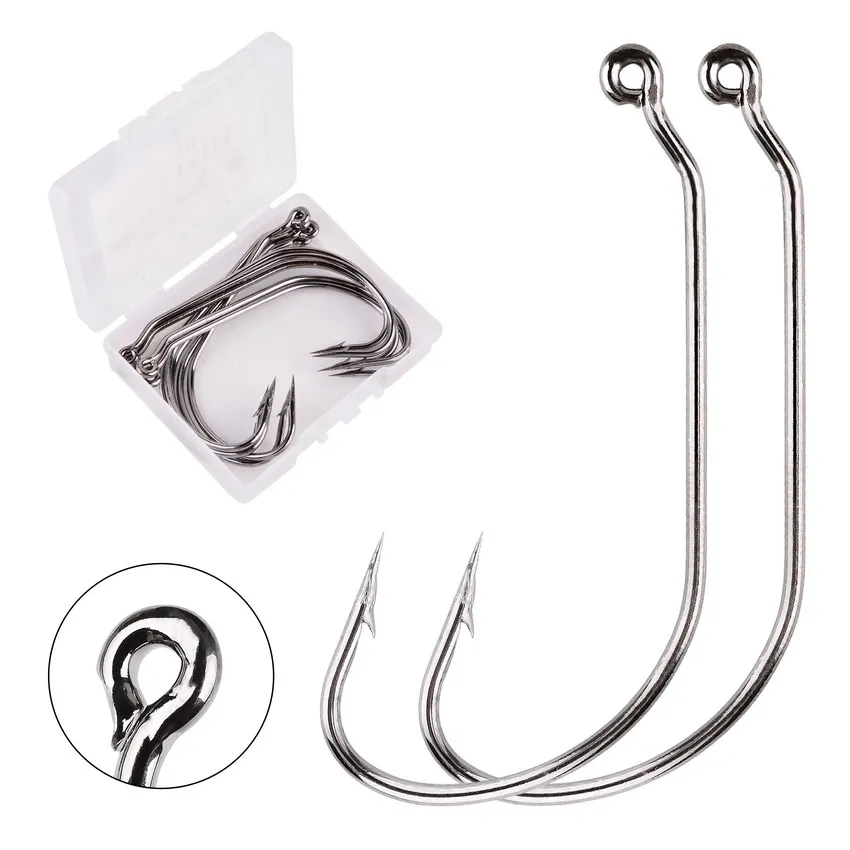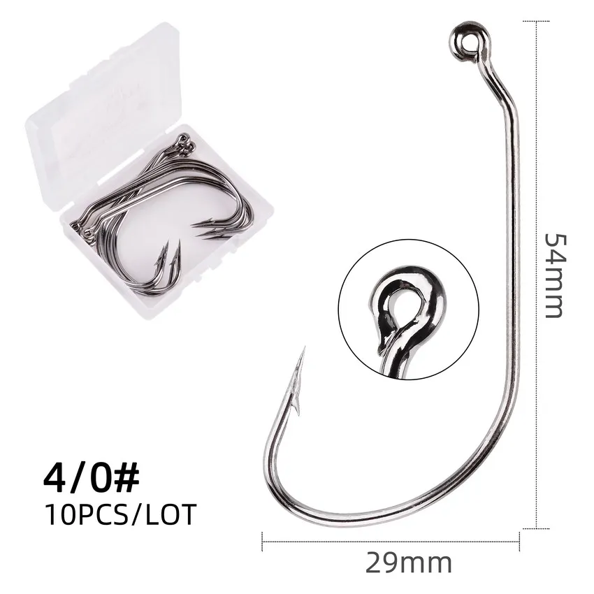 Juego de anzuelos de pesca de acero al carbono, anzuelos de manivela ancha, señuelo de gusano suave, púas, aparejos de pesca de carpa, 10 unidades por caja