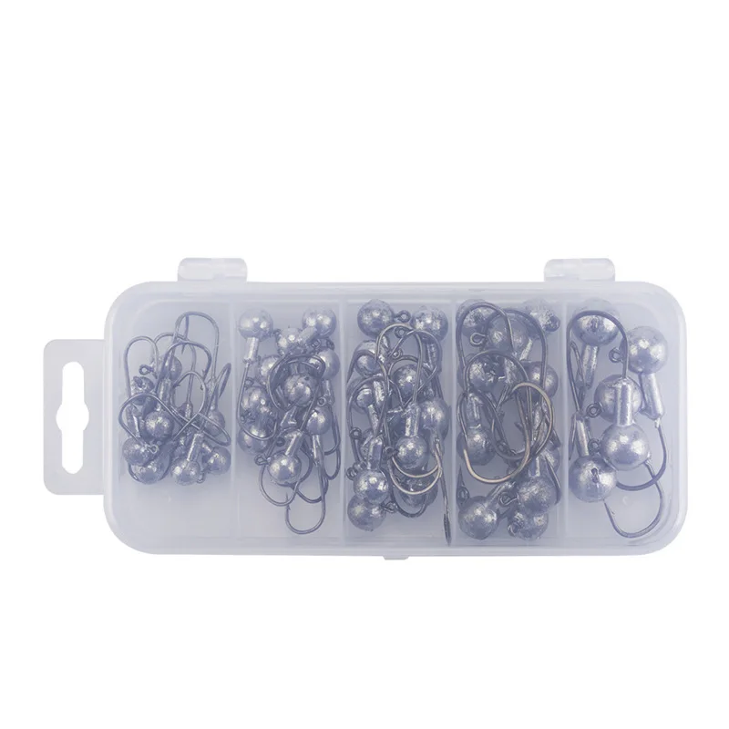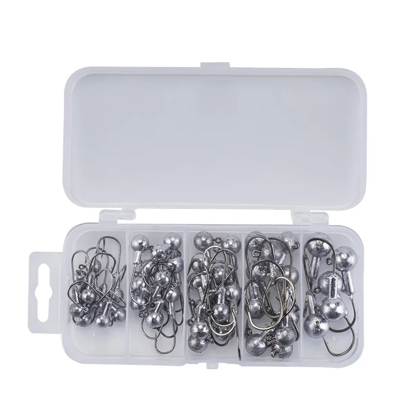Juego de anzuelos de pesca con cabeza de plomo, conjunto de anzuelos de pesca Jigging sin pintar, gusano suave, círculo, 2g, 3,5g, 5g, 7g, 10g, 45 unids/lote por caja