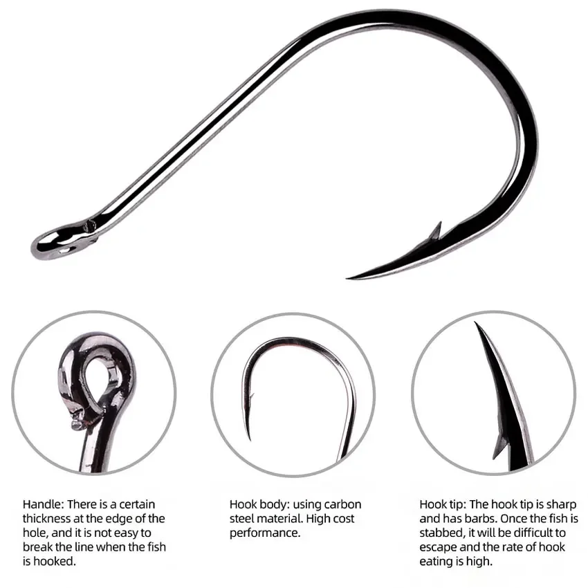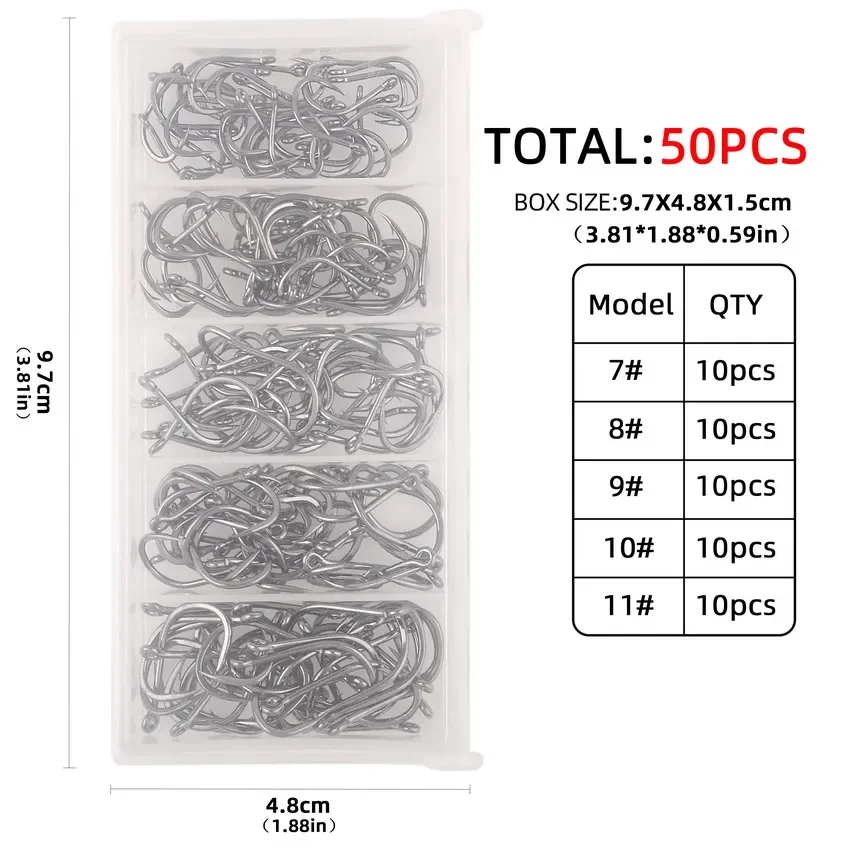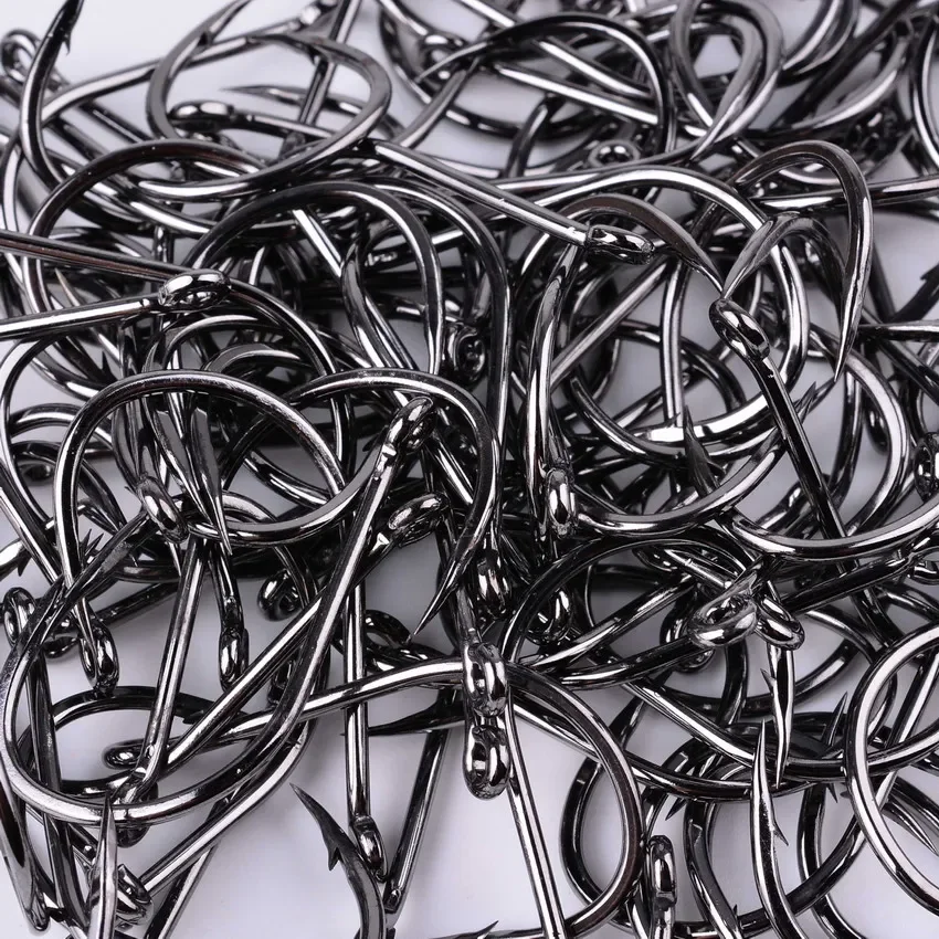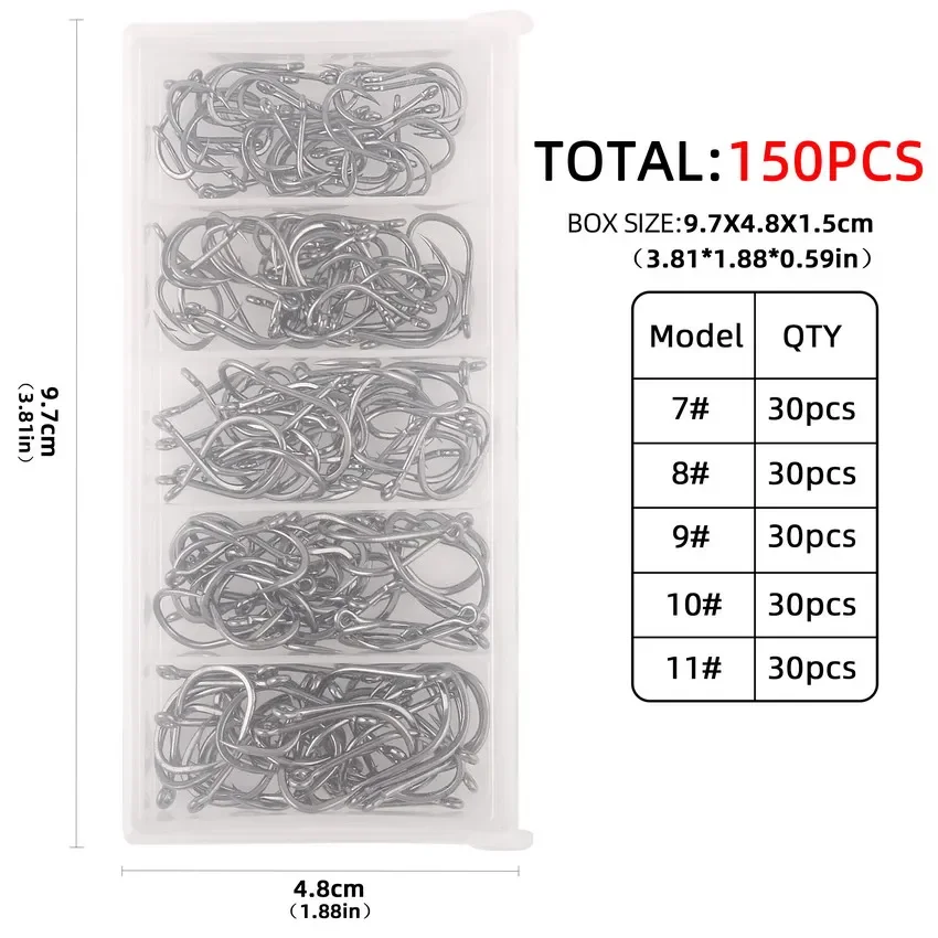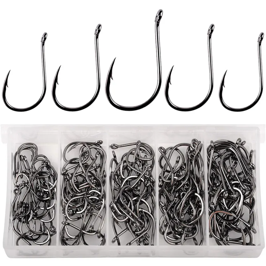 Juego de anzuelos de pesca, caja de 50/100/150 Uds., 5 series, anzuelo de pesca de un solo círculo de acero rico en carbono, pesca con mosca, anzuelos de carpa con púas Jip
