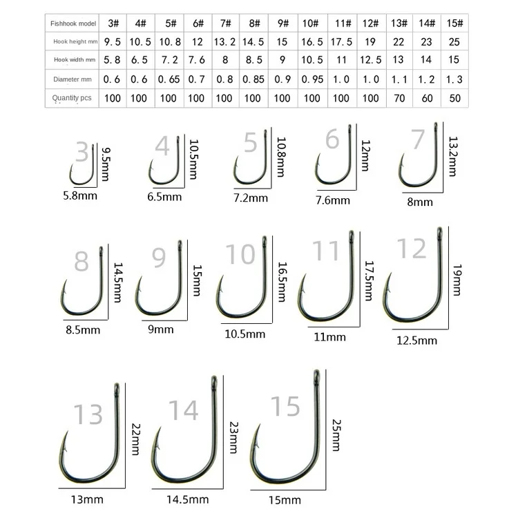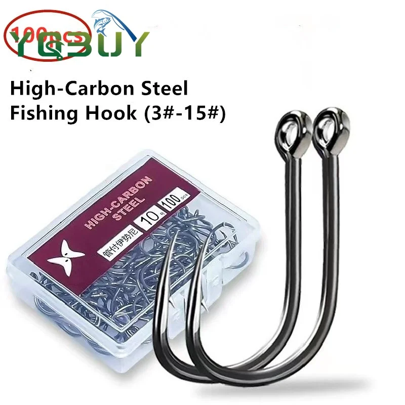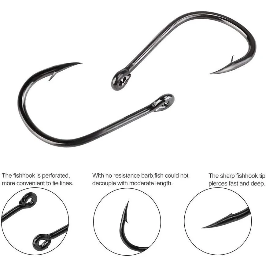 Juego de anzuelos de pesca de piezas, anzuelos circulares afilados de acero al carbono fuerte para agua salada y agua dulce, 100