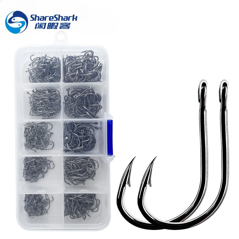 Juego de anzuelos de pesca de 500, caja de anzuelos circulares de acero al carbono con púas, anzuelos de pesca de pulpo de agua salada