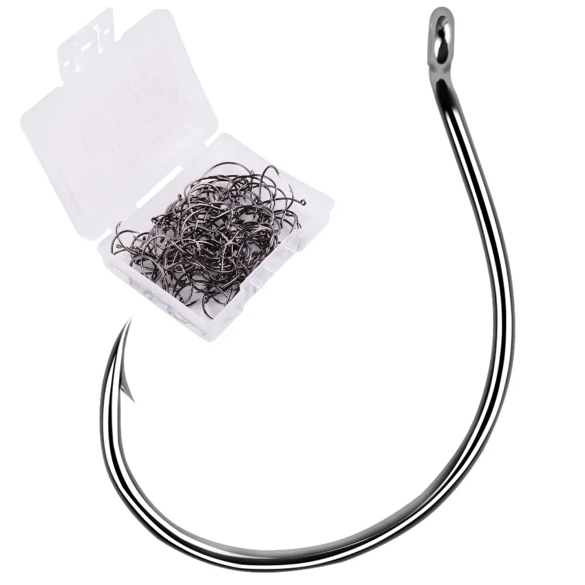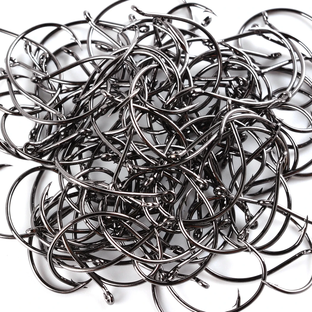 Juego de anzuelos de pesca con púas, equipo de pesca de acero al carbono para río a granel, anzuelos de pesca con forma de ojo de langosta, caja de aparejos, 100 Uds.