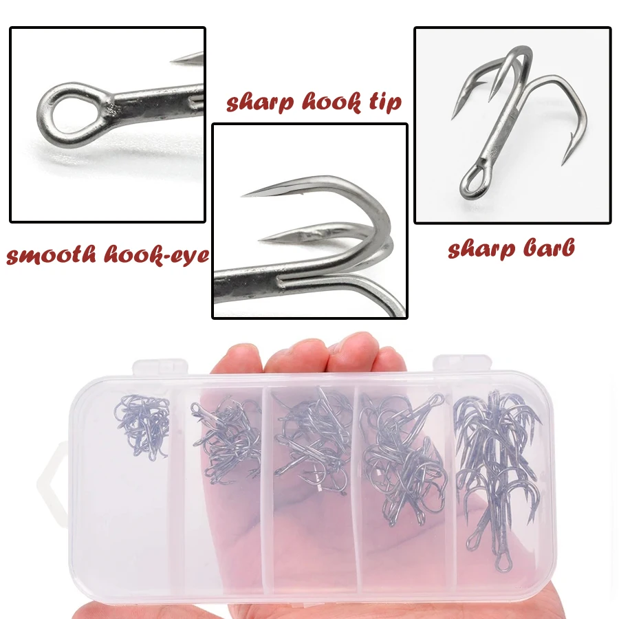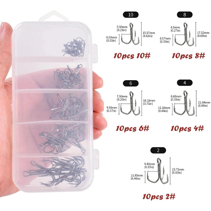 Anzuelos de pesca triples de 50 piezas, anzuelos de acero de alto carbono, anzuelos de pesca triples Extra afilados para pesca de agua dulce y salada 2 #4 #6 #8 #10 #