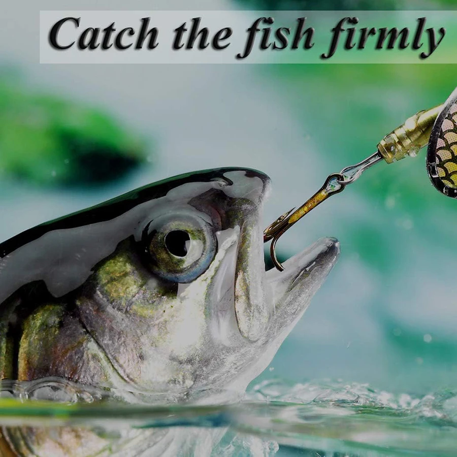 3 ganchos curvos y diseñados con púas, la estabilidad es fuerte, más evita que los peces se escapen.
