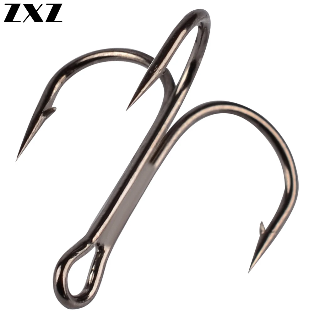 Juego de anzuelos triples de acero al carbono, equipo de Pesca, soporte de señuelo suave, 2/4/6/1000 #, 8/10 unids/set